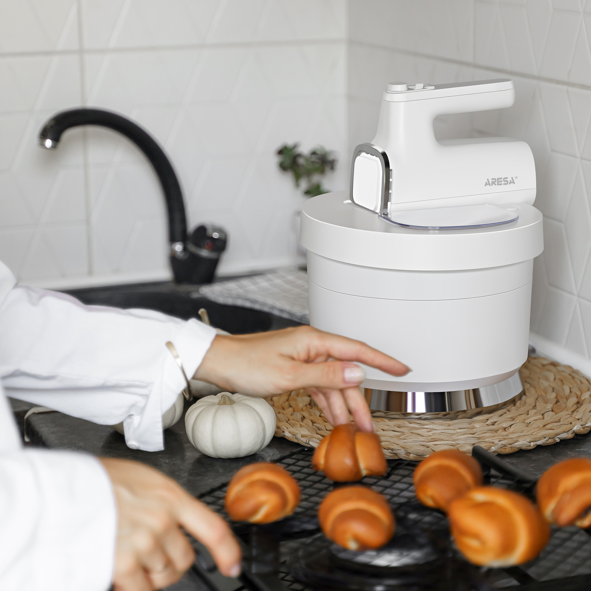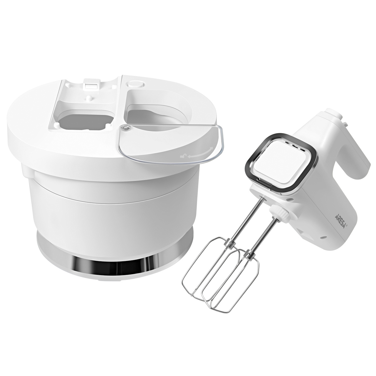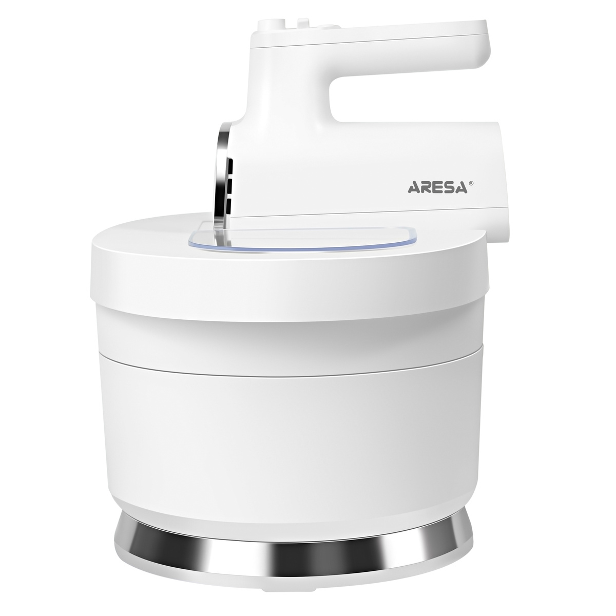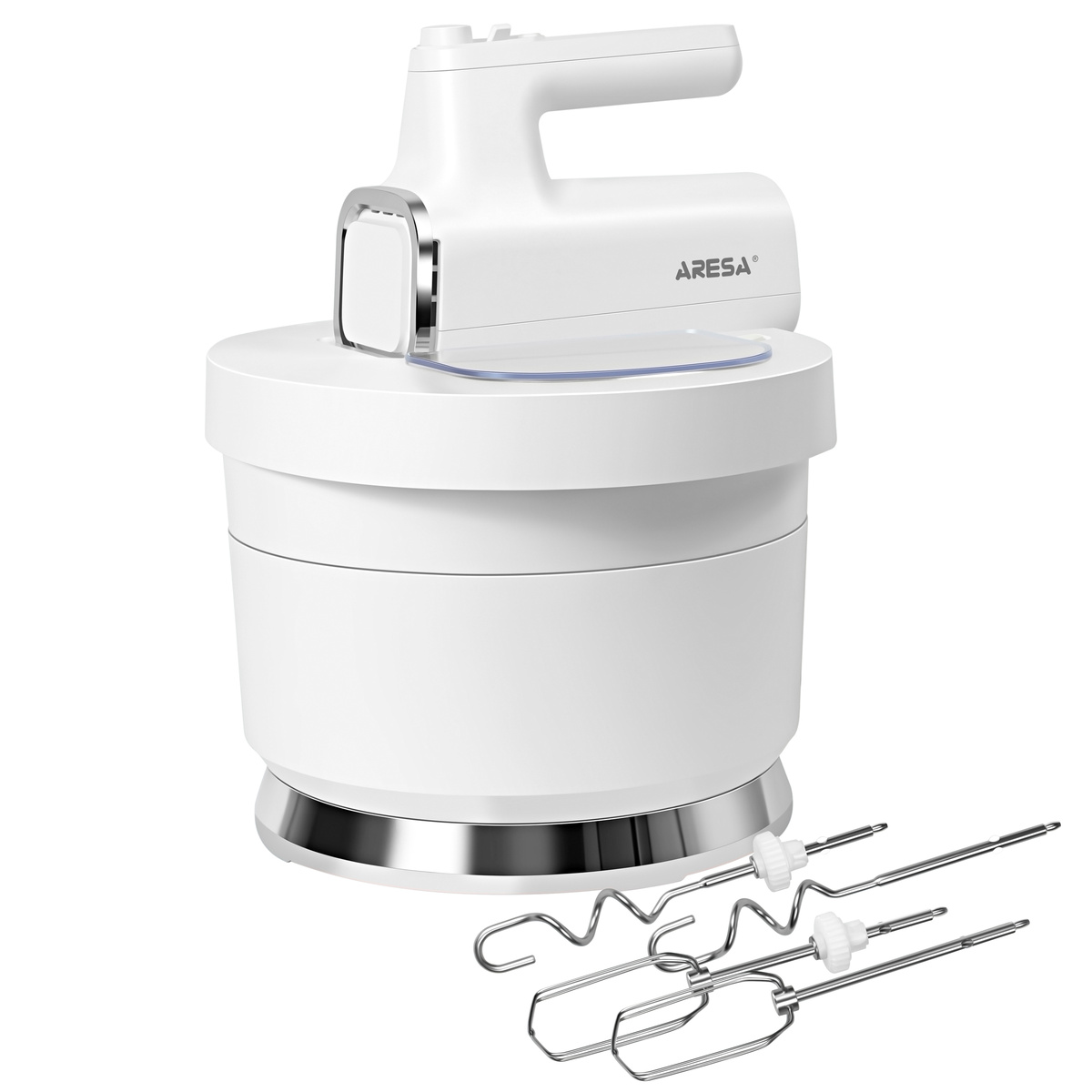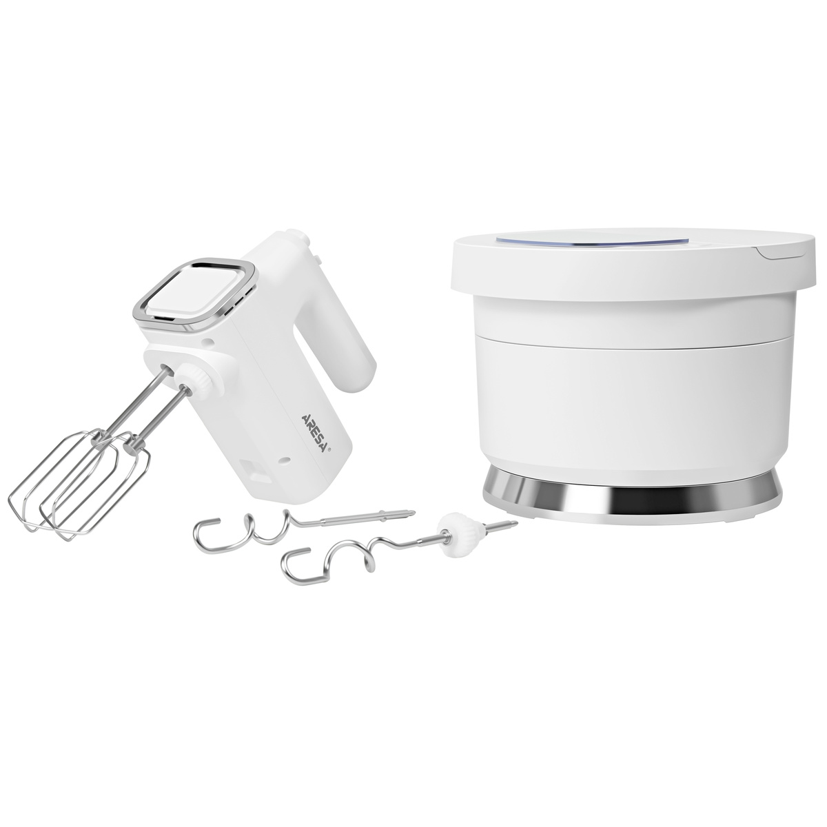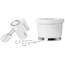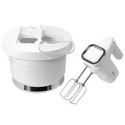 • Максимальная мощность: 800 Вт• Номинальная потребляемая мощность: 450• 6 скоростных режимов•• Функция"ТУРБО" (максимальное увеличение скорости)• Кнопка извлечения насадок• Кнопка фиксатора миксераКОМПЛЕКТАЦИЯ:• Cъемная вращающаяся чаша (3,5 л)• Стационарная чаша (3,5 л)• Венчики для взбивания яиц и крема• Насадки для замешивания теста• Защитная крышка чаши с отодвигающимся прозрачным окошком• Cкребок