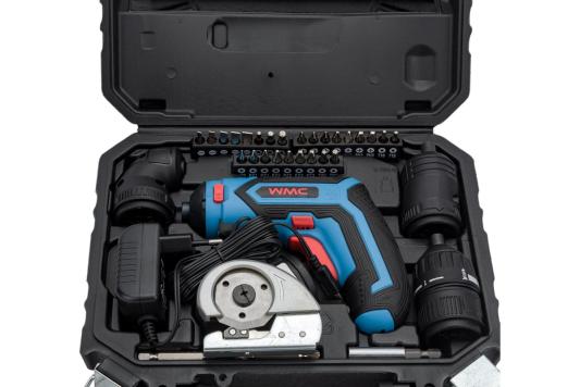 Прочие особенности и свойстваКрутящий момент инструмента, оснащенного литий-ионным элементом питания емкостью 1,5 Ah, составляет 4 Нм. Это позволяет шуруповёрту эффективно выполнять операции сверления отверстий и закручивания - откручивания всех видов резьбового крепежа. Устройство обеспечивает скорость вращения патрона до 200 об/мин, и комплектуется различными видами рабочих насадок. В их число входит битодержатель 55 мм и набор из 26 бит длиной 25 мм, а также режущая, эксцентриковая, завинчивающая и угловая насадки. Для подзарядки аккумулятора от сети изделие комплектуется зарядным адаптером 220В. Чтобы обеспечить пользователю удобство хранения, транспортировки и быстрой подготовки инструмента к работе, аккумуляторный шуруповёрт WMC Tools модели 1036 поставляется в прочном и красивом кейсе из пластика.
