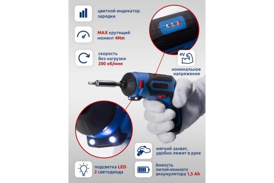 Подробный состав комплектаКомплектация Шуруповерт Зарядное устройство Биты 25мм: SL: 4мм х 2, 5мм х 2, 6мм х 2, 7мм х 2 PH: 0х2, 1х2, 2х3, 3х3 PZ: 1, 2х3, 3 T: 20, 25, 30 - 26 шт Биты 50мм: SL5мм PH2 Битодержатель 50 мм Прямая насадка Угловая насадка Разрезная насадка Пластиковый кейс