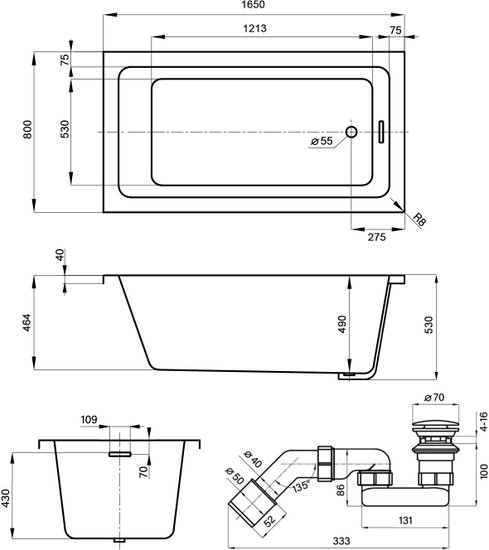 FreeDom 2.0 165x80 23300201R (встраиваемая ванна белый глянец, сифон-автомат хром)