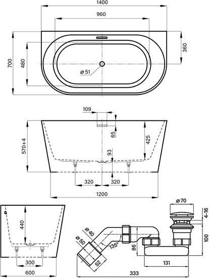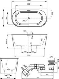 Excellence Pro 140x70 28760102R (пристенная ванна белый глянец, экран, ножки, сифон-автомат глянцевый белый)