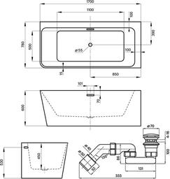 Bromance 170x78 23160303R (пристенная ванна (правая) белый глянец, экран, ножки, сифон-автомат матовый черный)