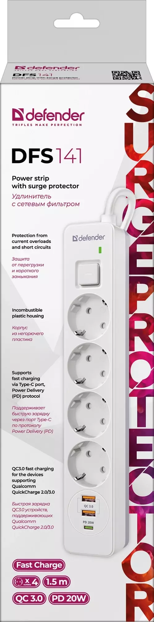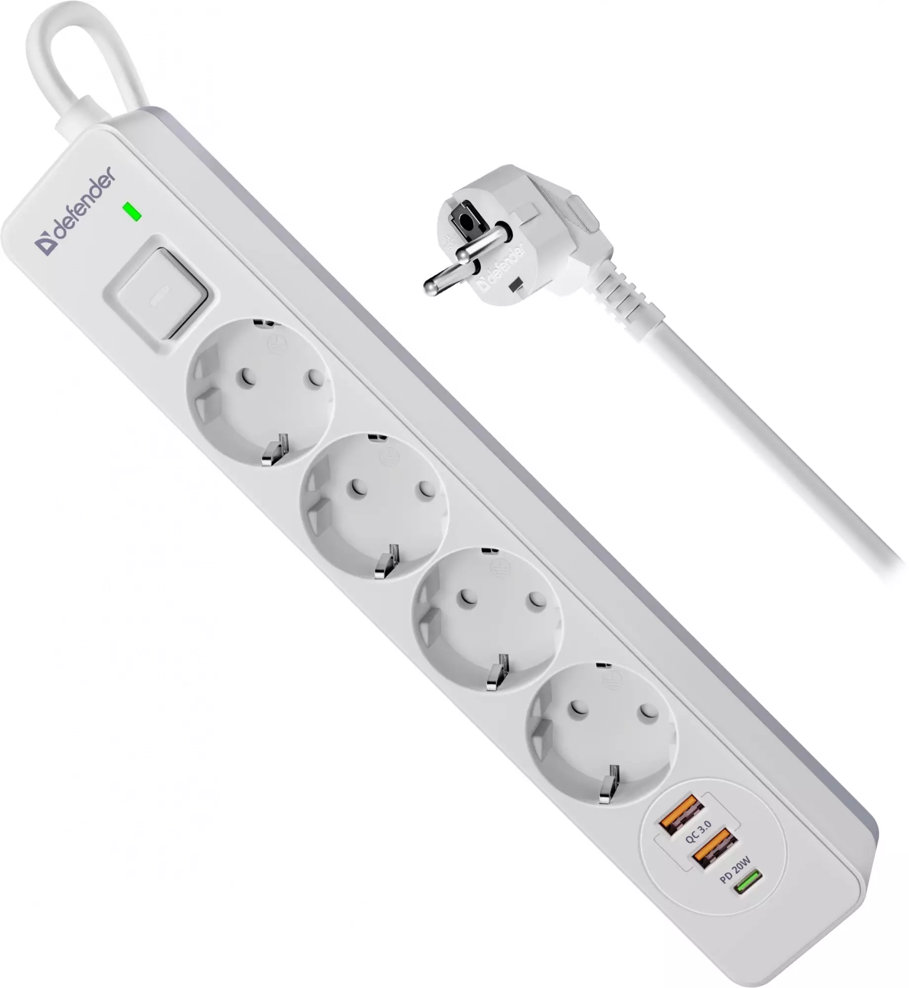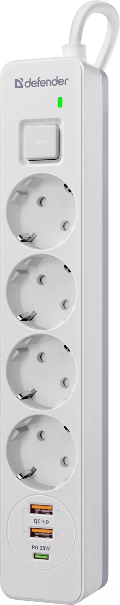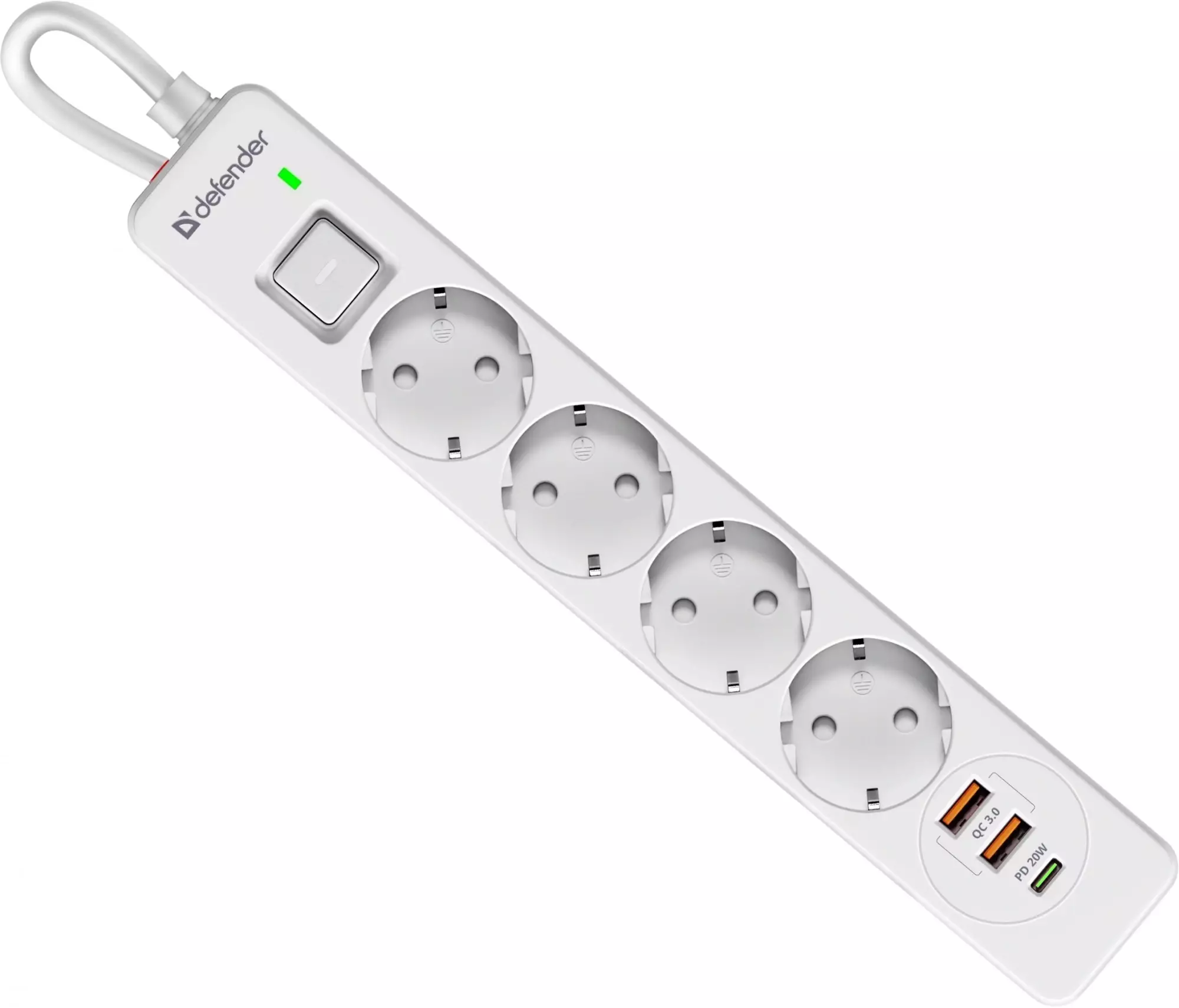 Сетевой фильтр Defender DFS 141 1.5м белый (99433)