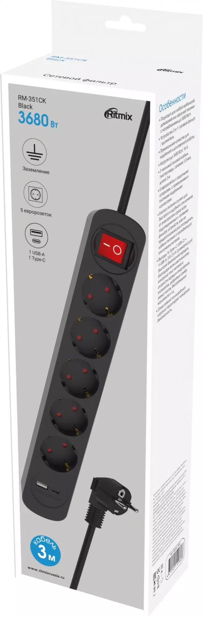 Сетевой фильтр Ritmix RM-351CK 3м черный