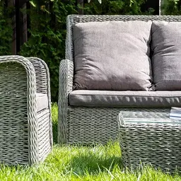 Ручное круглое плетение является основным декоративным элементом мебели. Оно выполнено из круглого искусственного ротанга.