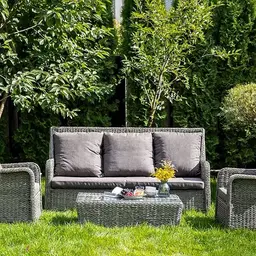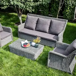Диван трехместный Гляссе 4SIS из искусственного ротанга (гиацинт), цвет графит