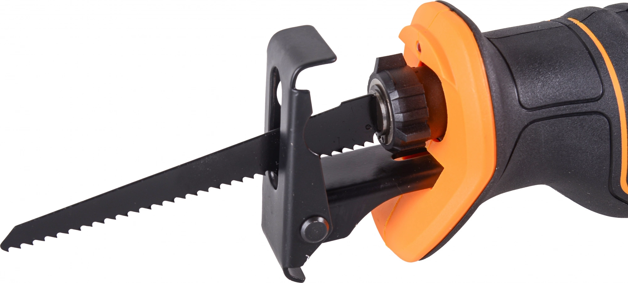 • Комплект поставки Сабельная пила, аккумуляторная батарея, адаптер питания (зарядное устройство), пилка по дереву, шестигранный ключ, паспорт, упаковка.