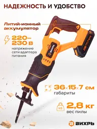 Сабельная пила Вихрь АСП-20Li аккум. 3100ход/мин (72/25/4)