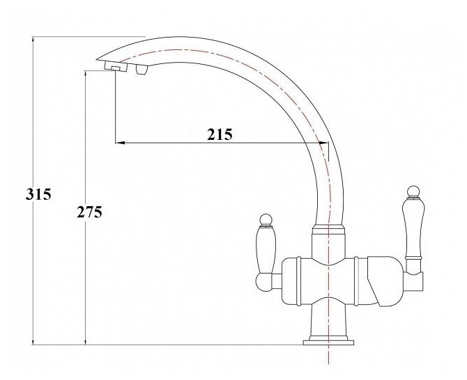 - Излив длина 215 мм, высота 275 мм