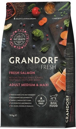 - Ингредиенты Свежий бескостный лосось (26%), Дегидрированное мясо индейки (19%), Батат, Горох, Жир индейки (6%), картофель, Порошок корней цикория (натуральный источник пребиотиков: FOS и инулин), Минералы, Льняное семя, Яблоки, Морковь, Пивные дрожжи (природный источник MOS и бета-глюканов), Масло лосося (0,5%), Клюква, Черника, Брокколи, Шпинат, Помидоры, Глюкозамина гидрохлорид (100 мг/кг), Хондроитина сульфат (100 мг/кг), юкка Шидигера, Грейпфрут, Розмарин, Куркума.
