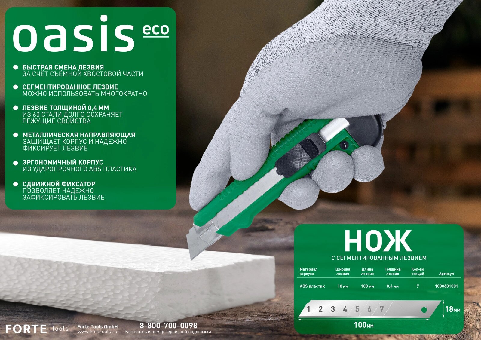 Нож с сегментированным лезвием Oasis Eco (18х100х0,4мм, пластиковый корпус)