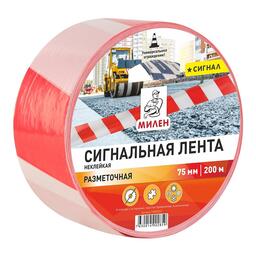 Лента сигнальная неклейкая Милен TWM003T 75мм*200м (бело-красная, в инд. упак., для ограждения)