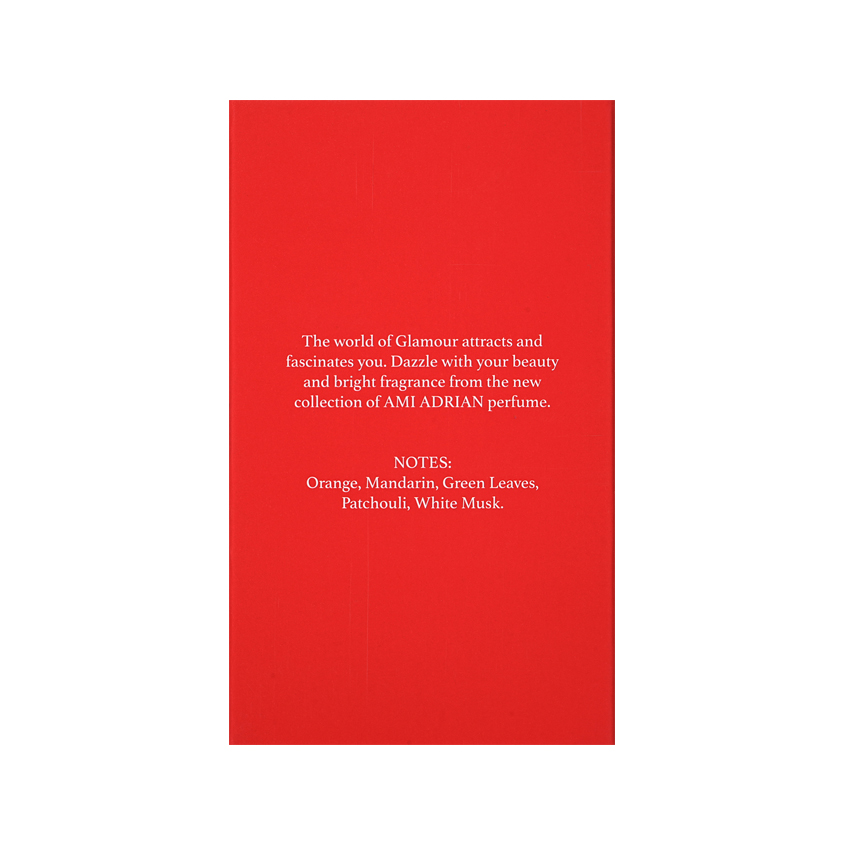 Мир гламура манит и очаровывает вас. Поразите своей красотой и ярким ароматом из новой коллекции духов AMI ADRIAN. НОТЫ: Апельсин, Мандарин, Зеленые листья, Пачули, Белый мускус.