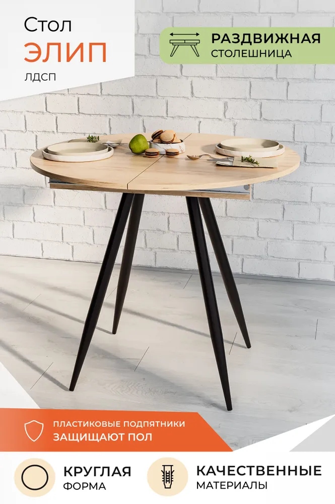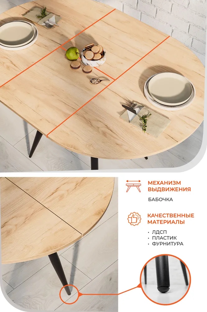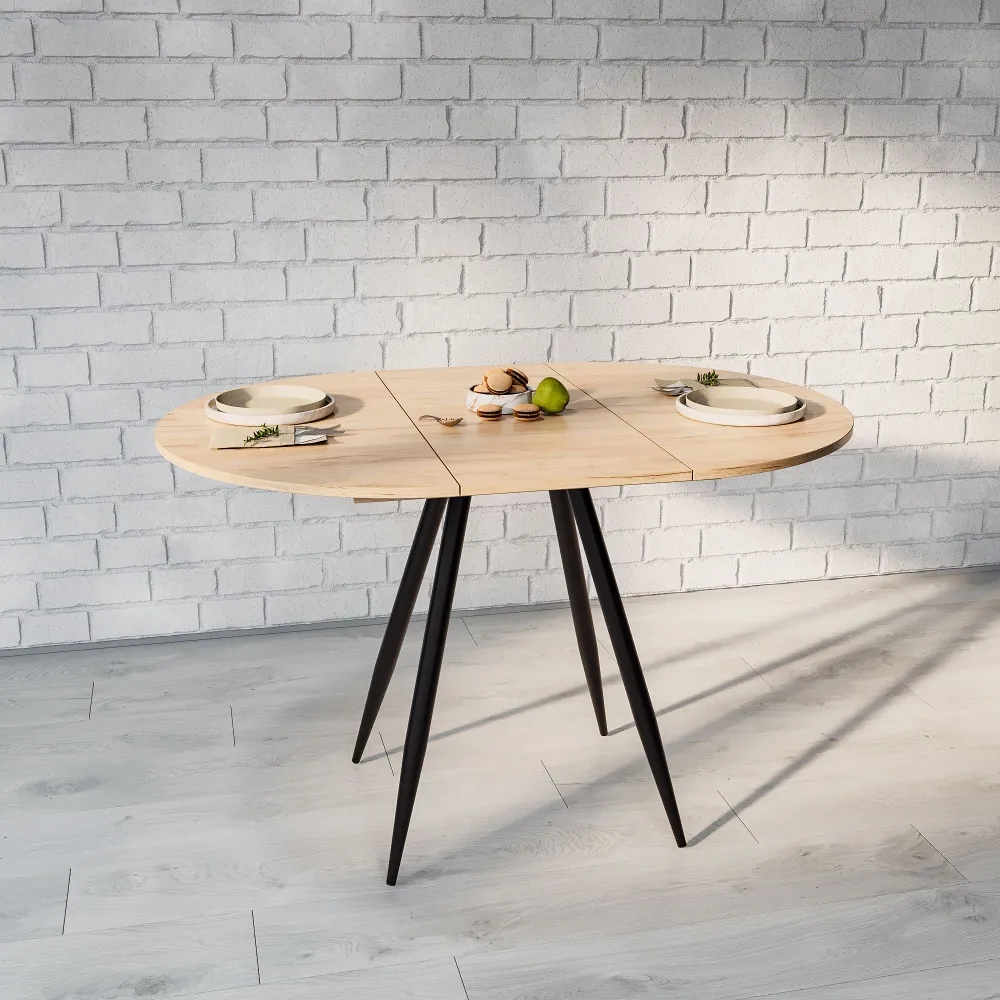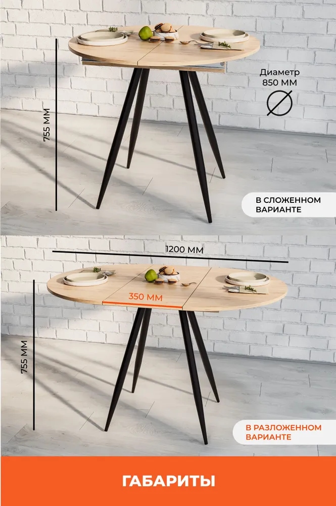 Столешница: ЛДСП 16 мм Размеры столешницы: сложенная - 850 х 850 мм разложенная - 850 х 1200 мм Опоры: металл с порошковой окраской Опора нерегулируемая