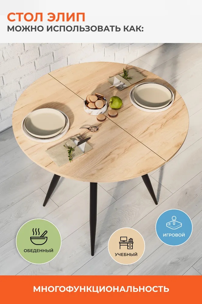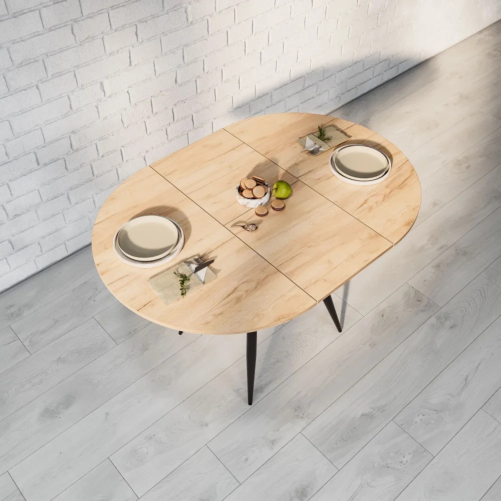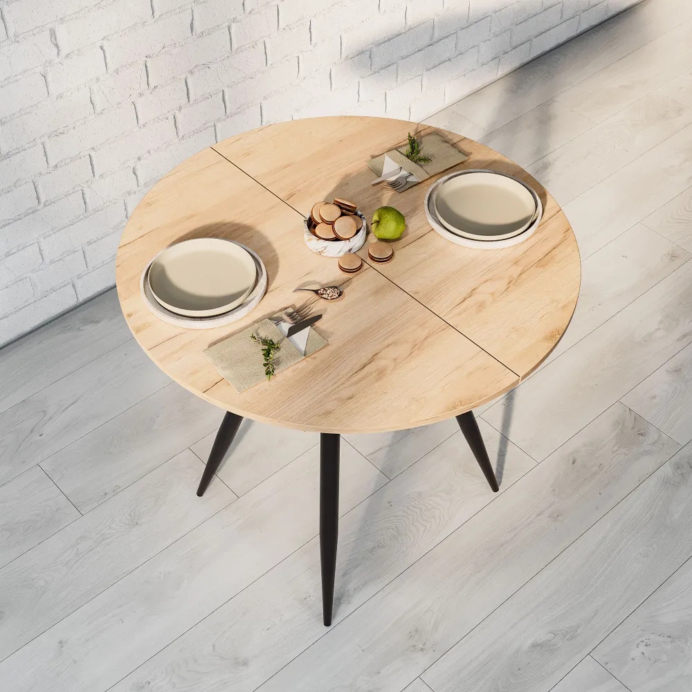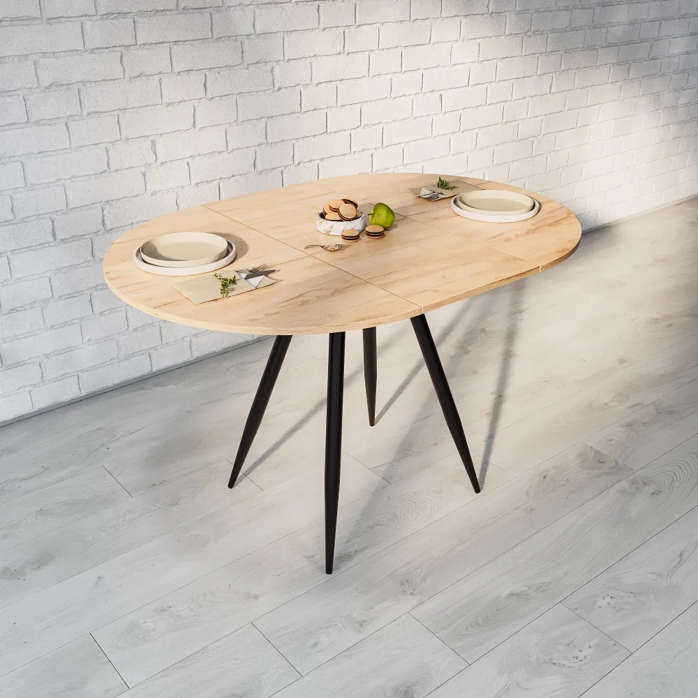 Столешница: ЛДСП 16 мм Размеры столешницы: сложенная - 850 х 850 мм разложенная - 850 х 1200 мм Опоры: металл с порошковой окраской Опора нерегулируемая