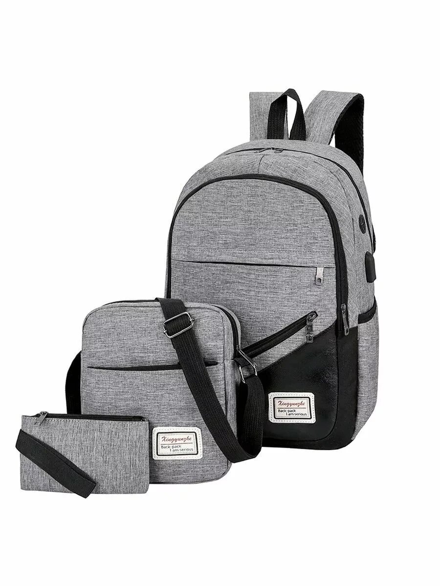 Набор 3 в 1: рюкзак, сумка, пенал (серый)