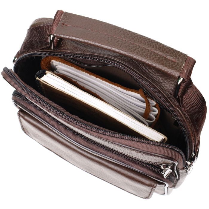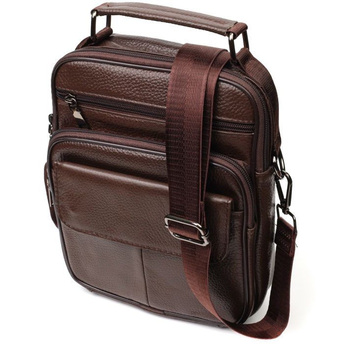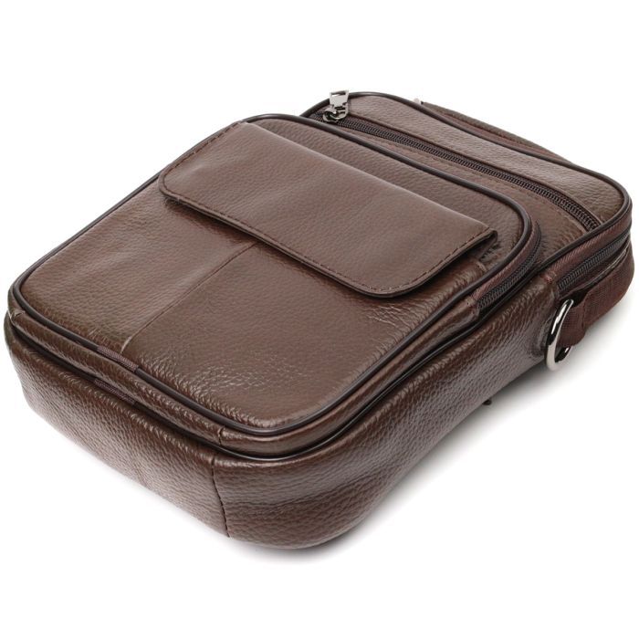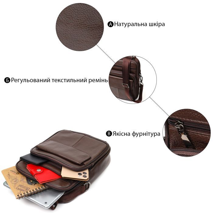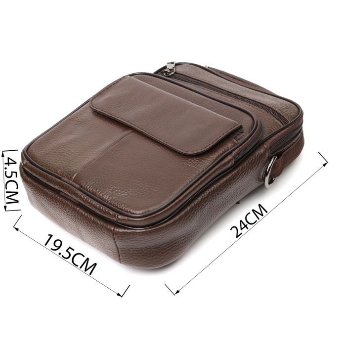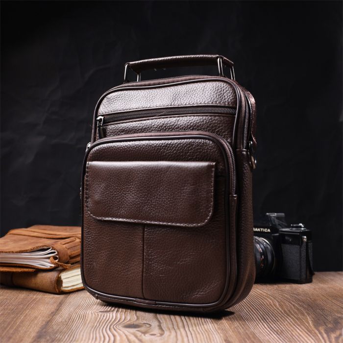 Сумка Vintage Вертикальна чоловіча з натуральної шкіри Коричнева (21952)