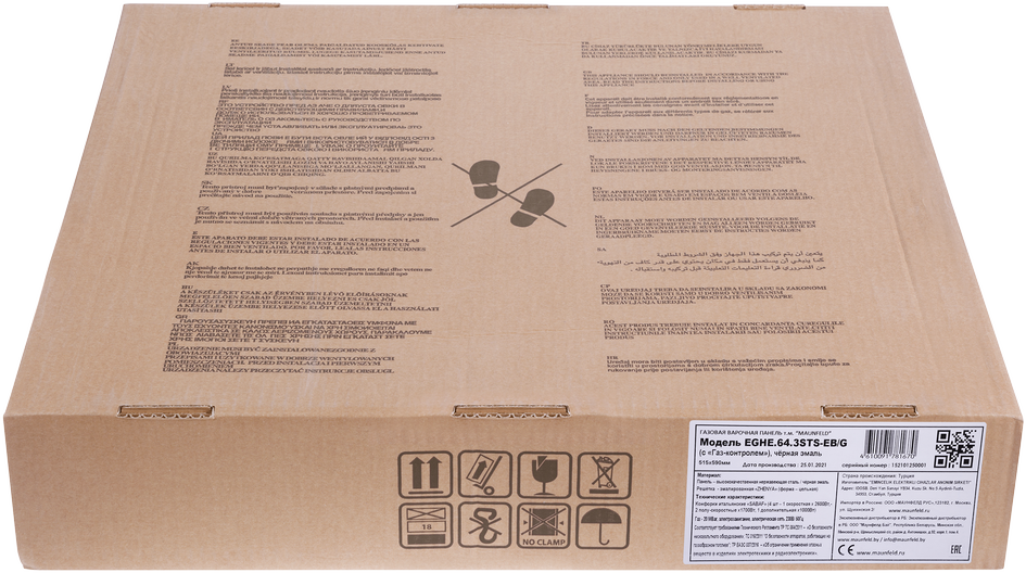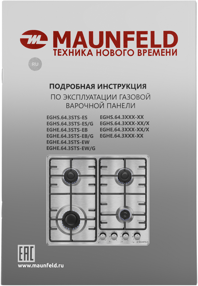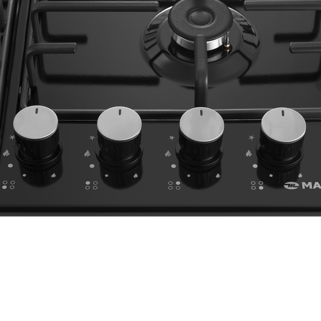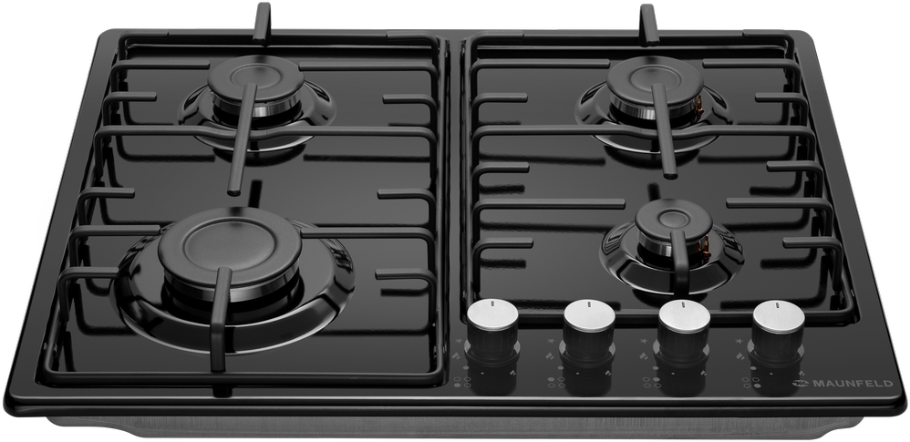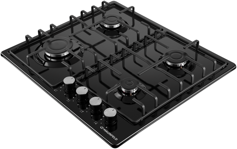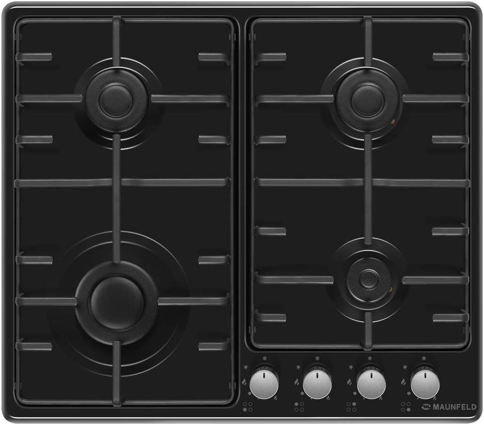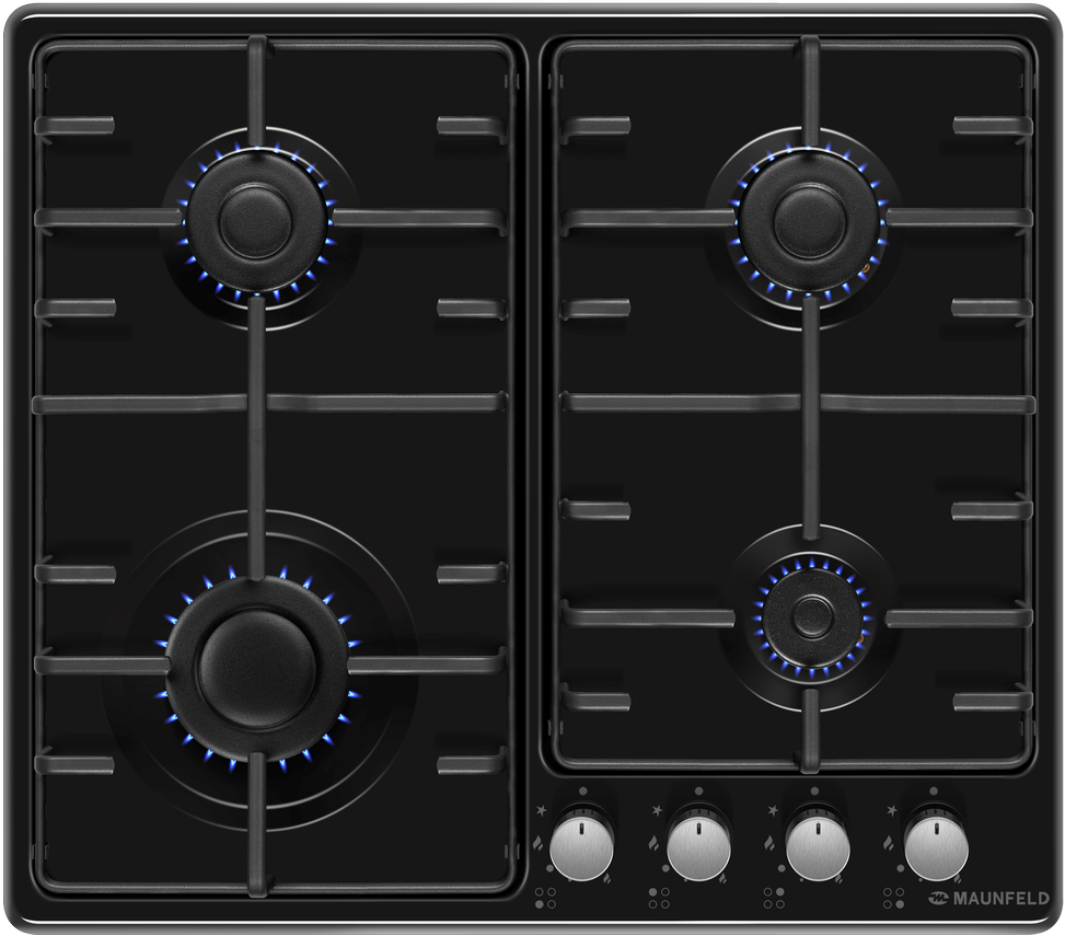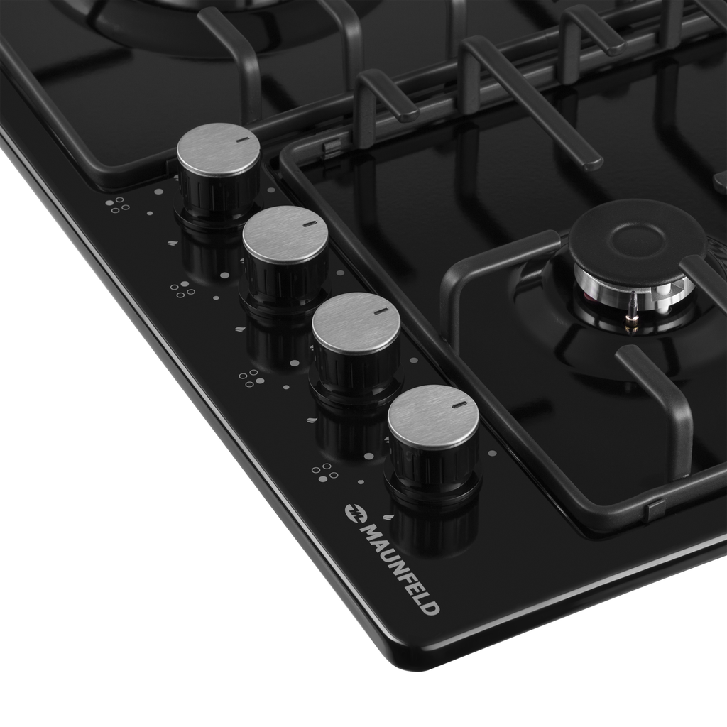 Газовая варочная панель MAUNFELD/ Газовая варочная панель MAUNFELD EGHE.64.3STS-EB/G, механическое управление, 4 конфорки, мощность конфорок 2600, 1700, 1700, 1000, электроподжиг, газ-контроль, цвет черный