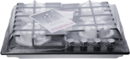 Панель выполнена из металла, покрытого термостойкой прочной эмалью черного цвета. Четыре стандартные конфорки мощностью 1000 Вт, 1700 Вт, 1700 Вт и 2600 Вт. Конфорки спроектированы таким образом, что огонь не перегревает ни эмалированные решетки, ни ручки управления.