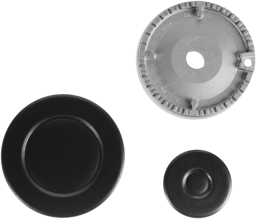 Регулирование подачи газа и электроподжиг конфорок происходит с помощью поворотных ручек из термостойкой пластмассы. Для простоты использования около каждой ручки нанесены информационные изображения: используемая конфорка, подача газа выключена, электроподжиг, максимальное пламя и минимальное пламя.