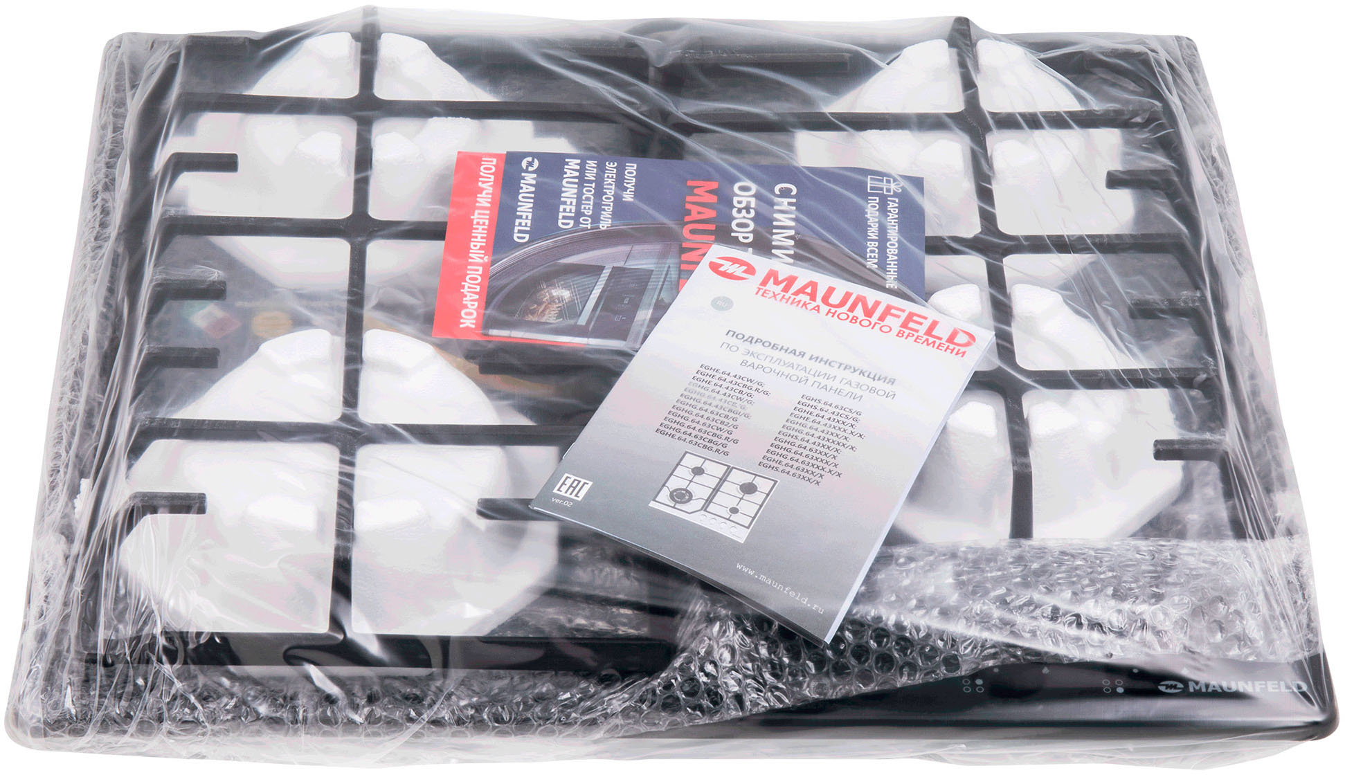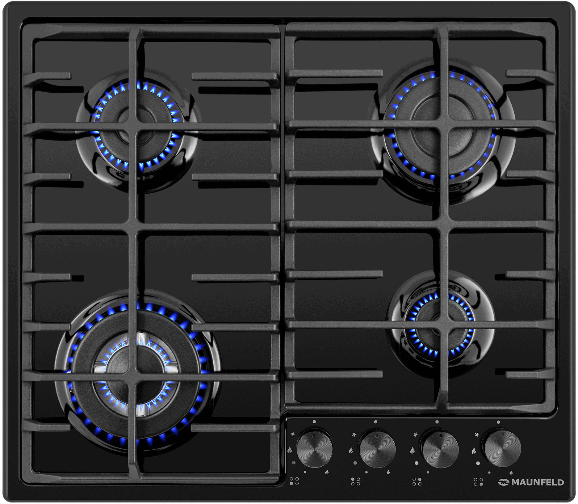 Газовая варочная панель MAUNFELD/ Газовая варочная панель MAUNFELD EGHE.64.63CB2/G, механическое управление, 4 конфорки, мощность конфорок 1000, 1700, 1700, 3800, электроподжиг, газ-контроль, WOK, цвет черный