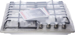 Панель оснащена 4 газовыми конфорками мощностью 3800, 1700, 1700, 1000 Вт. Благодаря специальной конструкции конфорок, они не перегревают чугунные решетки и ручки управления.