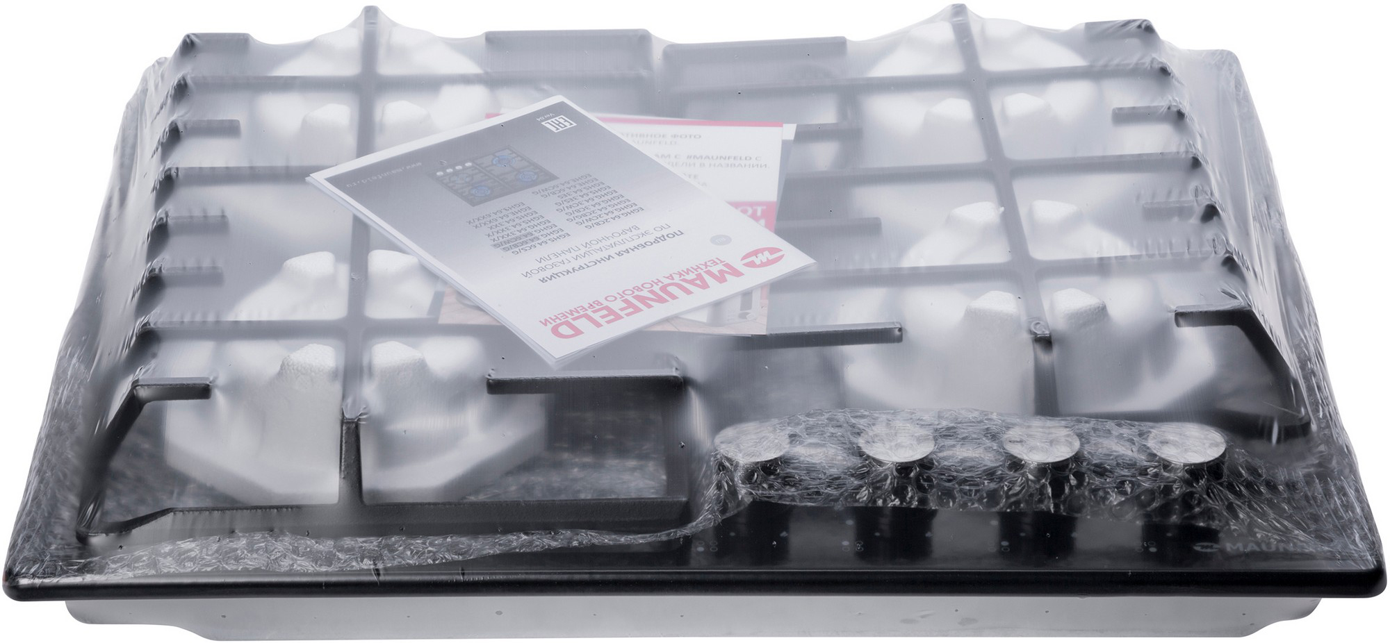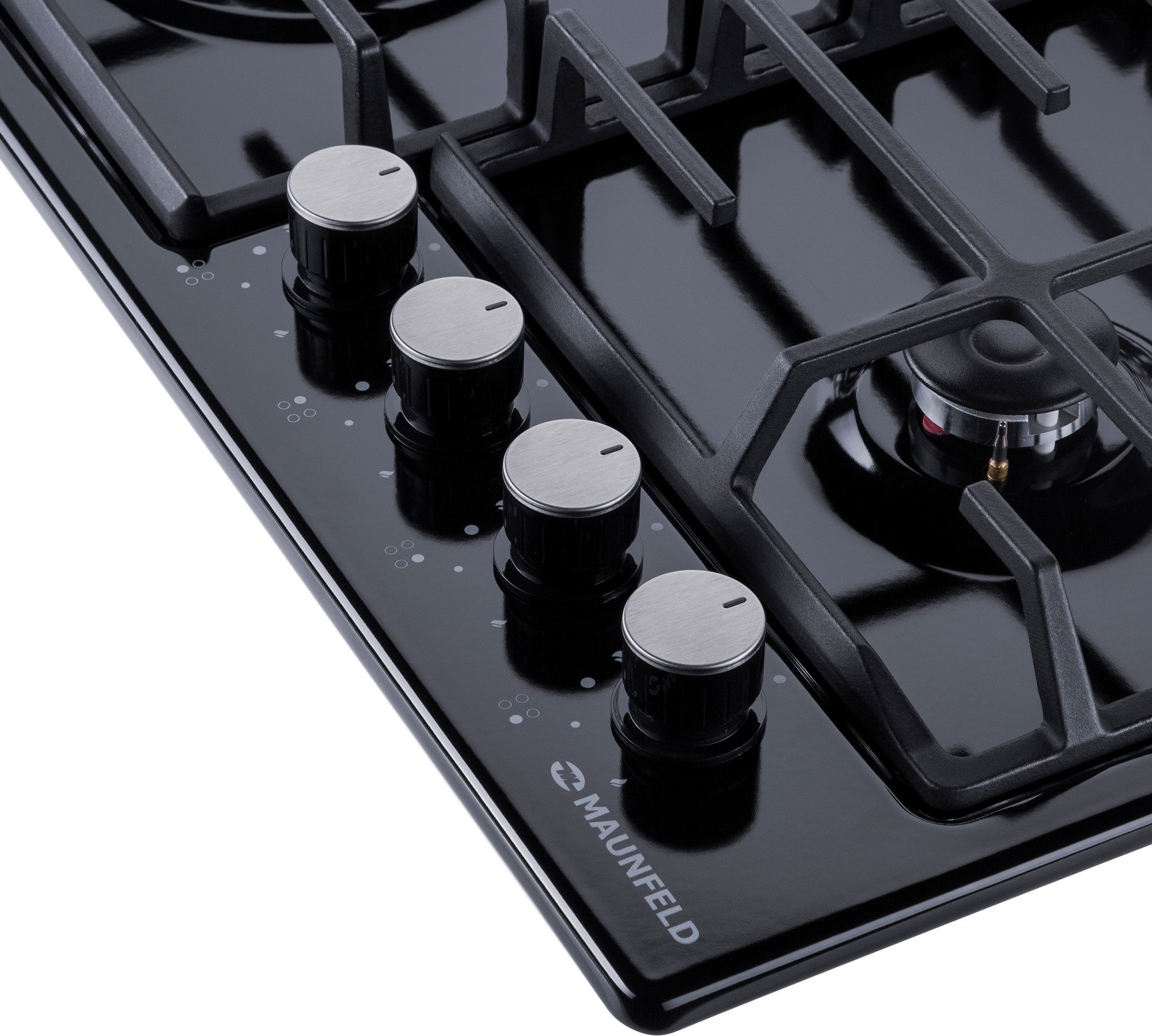 Газовая варочная панель MAUNFELD/ Газовая варочная панель MAUNFELD EGHE.64.6CB/G, механическое управление, 4 конфорки, мощность конфорок 1000, 1700, 1700, 2600, электроподжиг, газ-контроль, цвет черный/стальной