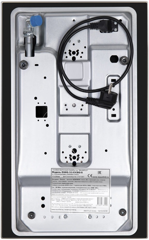 Газовая варочная панель MAUNFELD/ Газовая варочная панель MAUNFELD EGHG.32.63CBG/G, механическое управление, 2 конфорки, мощность конфорок 1700, 3000, электроподжиг, газ-контроль, WOK, цвет бежевый