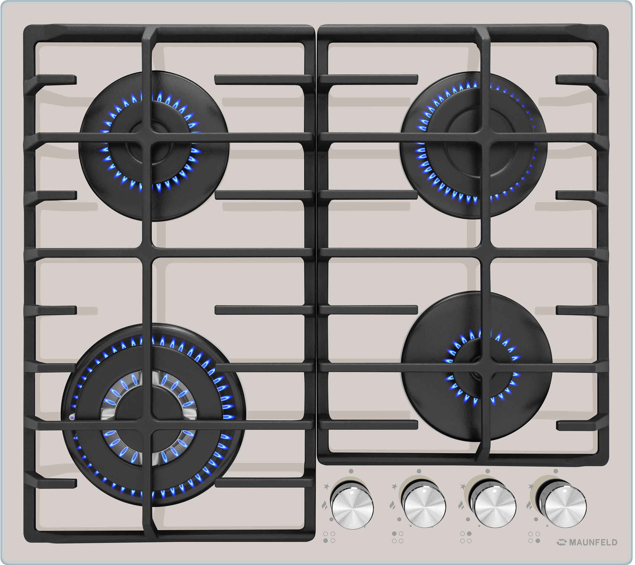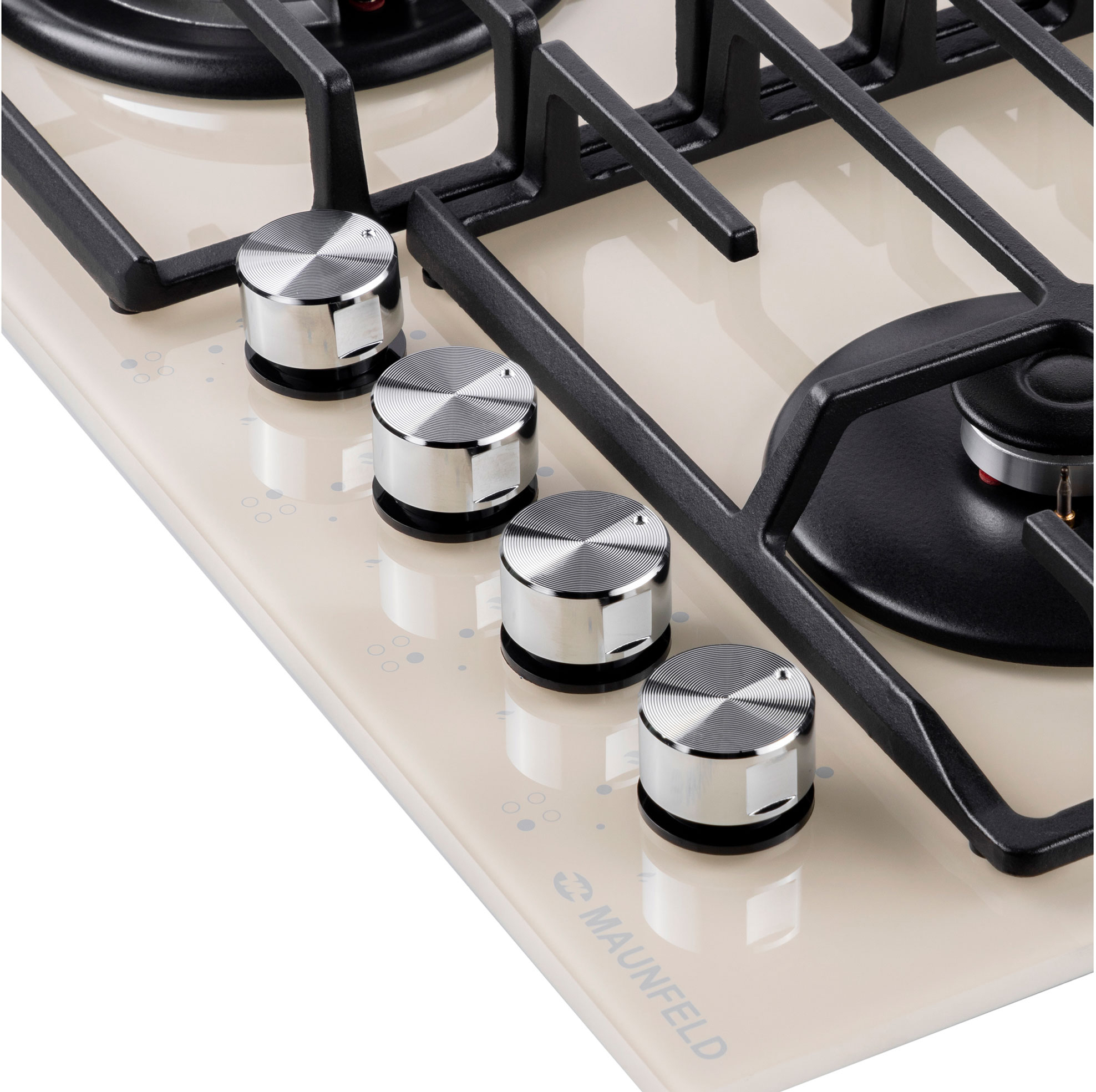 Газовая варочная панель MAUNFELD/ Газовая варочная панель MAUNFELD EGHG.64.63CBG/G, механическое управление, 4 конфорки, мощность конфорок 1000, 1700, 1700, 3800, электроподжиг, газ-контроль, WOK, бежевый/нержавеющая сталь