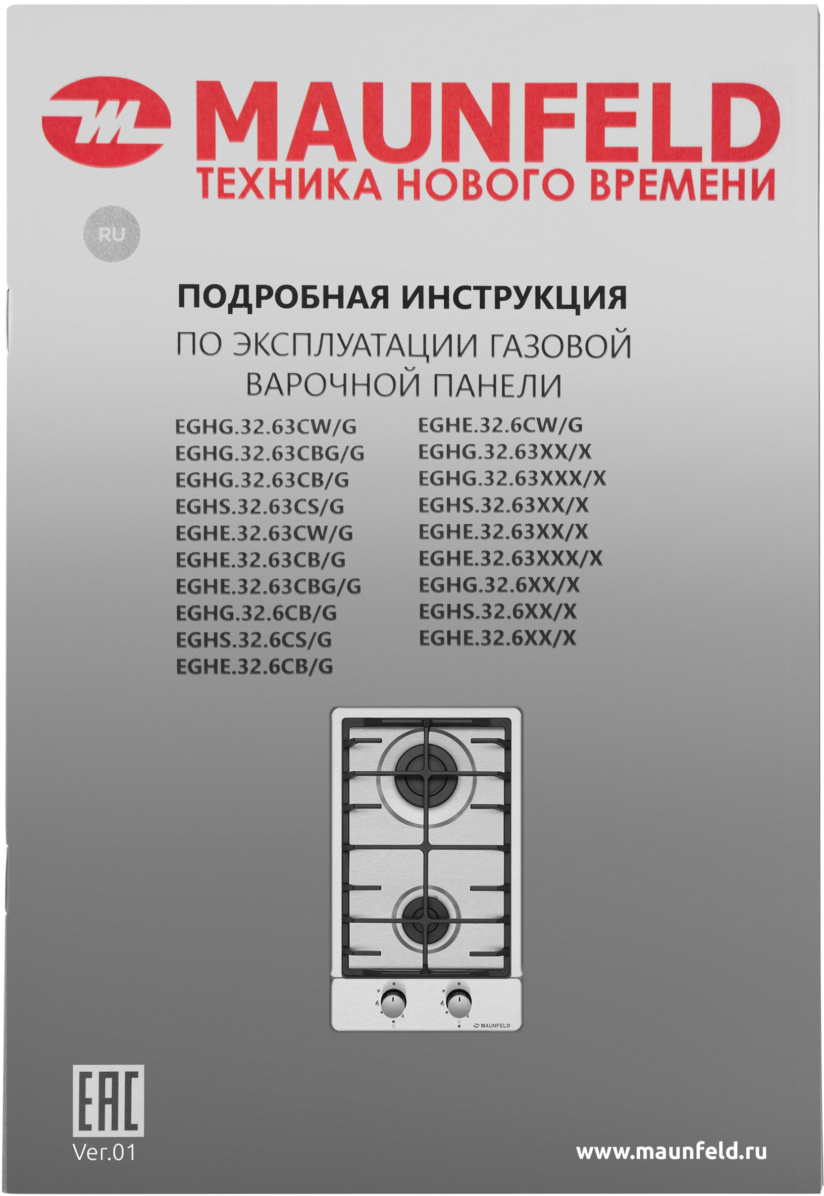 Газовая варочная панель MAUNFELD/ Газовая варочная панель MAUNFELD EGHS.32.6CS/G, домино, механическое управление, 2 конфорки, мощность конфорок 1700, 2600, электроподжиг, газ-контроль, цвет черный/стальной