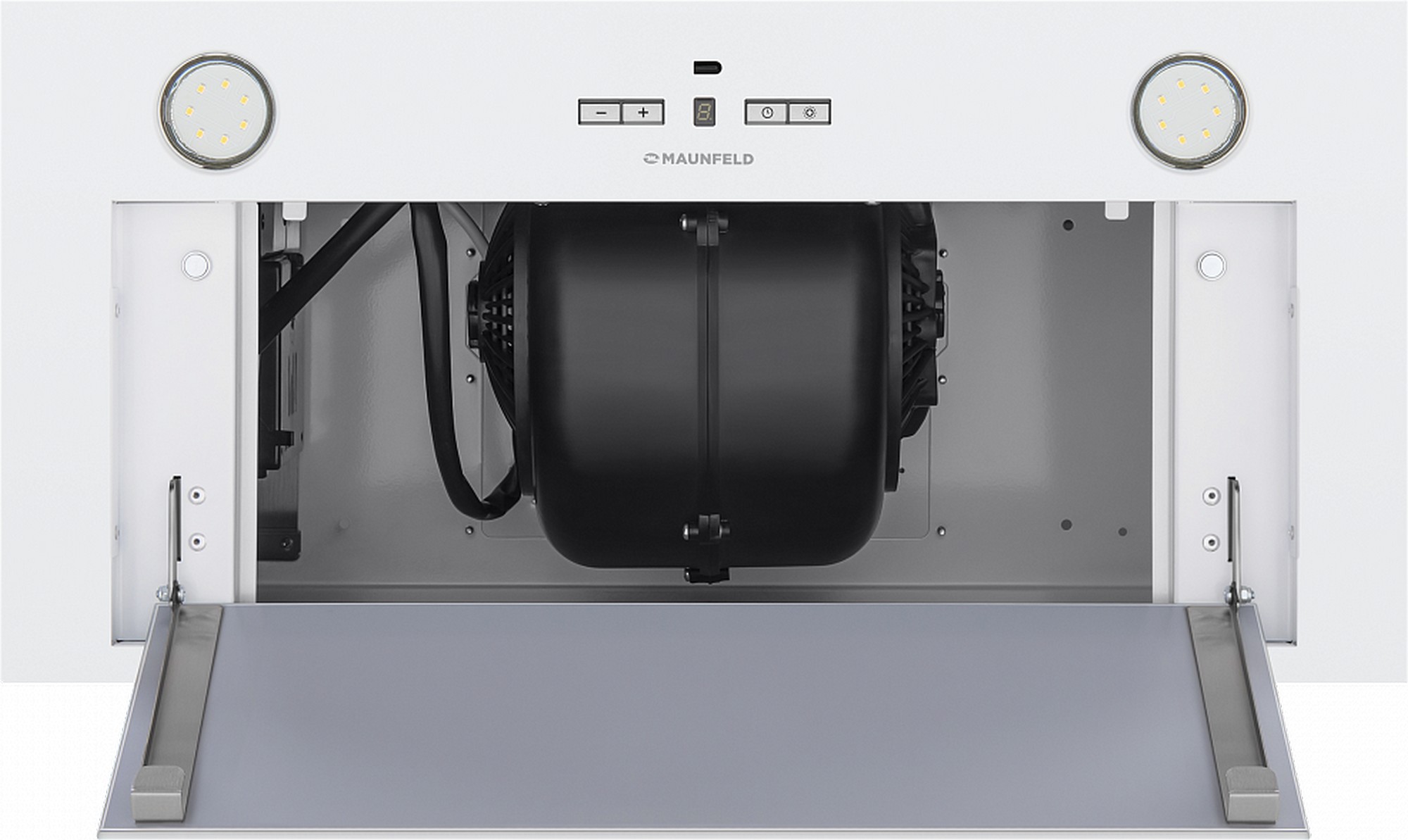 Кухонная вытяжка MAUNFELD/ Кухонная вытяжка MAUNFELD Fantasy 1000ST 60, полновстраиваемая, 4 скорости, электронное управление, таймер, энергоэффективность В, уровень шума 52 дБ ,цвет белое стекло