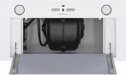 Корпус сделан из нержавеющей стали. Матовый фасад прекрасно сочетается с откидной панелью из закаленного глянцевого стекла белого цвета. За ней располагается металлический жироулавливающий фильтр, который легко снимается и полностью разбирается для чистки. Загрязненный воздух втягивается по всему периметру панели.