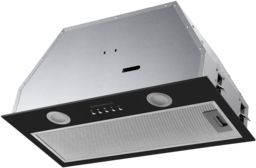 Классическая встраиваемая кухонная вытяжка шириной 60 см подойдет для большой кухни. Модель монтируется в навесной шкаф над поверхностью плиты. Может использоваться для отвода воздуха из помещения при подключении к системе домовой вентиляции или очищать воздух с помощью сменного угольного фильтра.