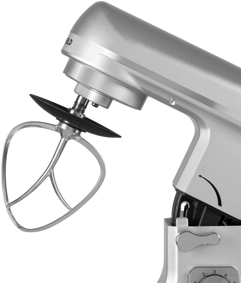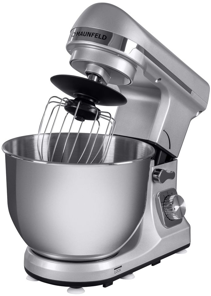 Миксер планетарный MAUNFELD/ Миксер планетарный MAUNFELD MF-434S, мощность 1000 Вт, 3 насадки, объем чаши 5 л, импульсный режим, крышка, планетарное смешивание, цвет нержавеющая сталь