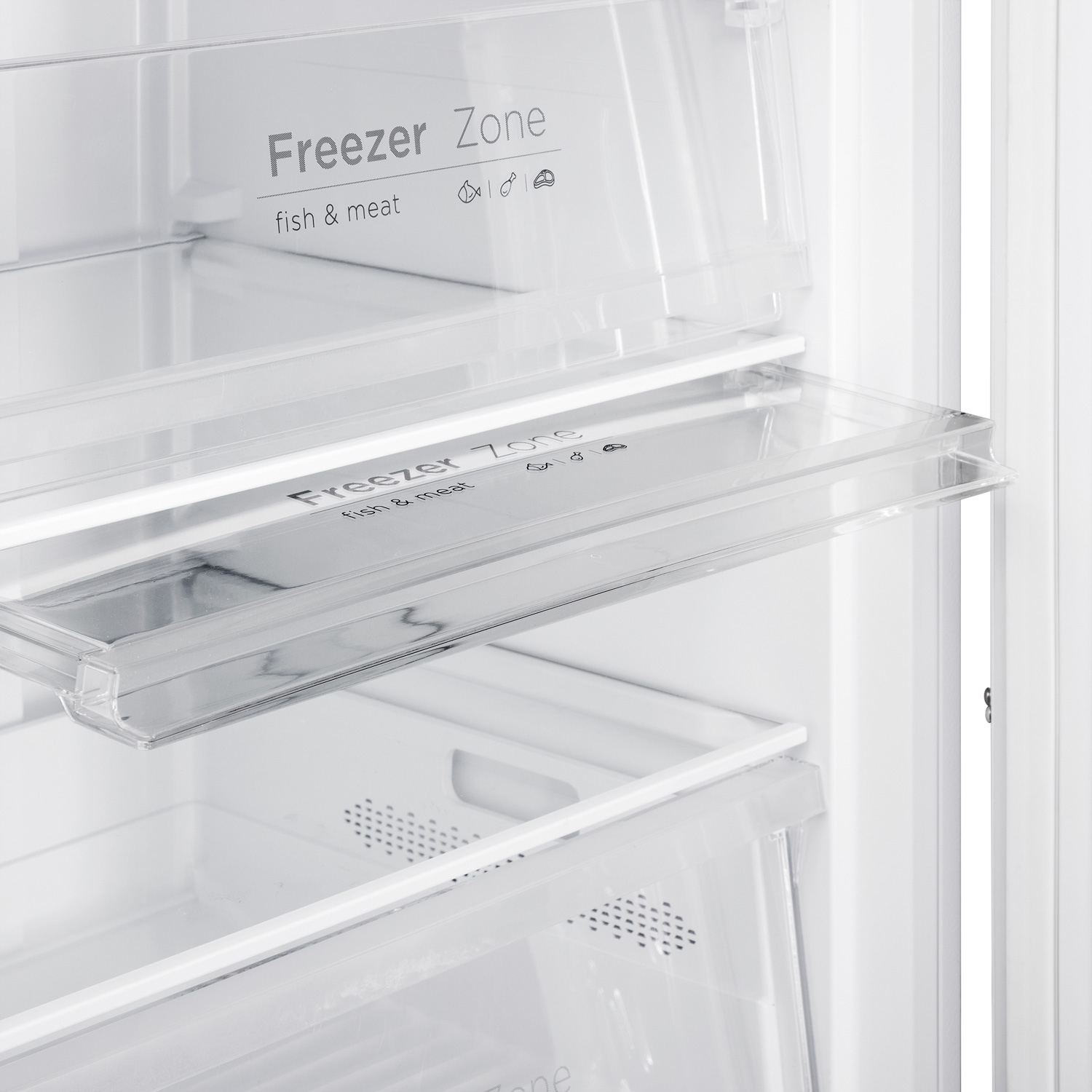 Современный однокамерный морозильник-холодильник высотой 185 см и объемом 382 л . Для повышенного комфорта и удобства загрузки крупных продуктов и больших упаковок с полуфабрикатами созданы 2 специальных ящика Big Box увеличенного объема по 48л.