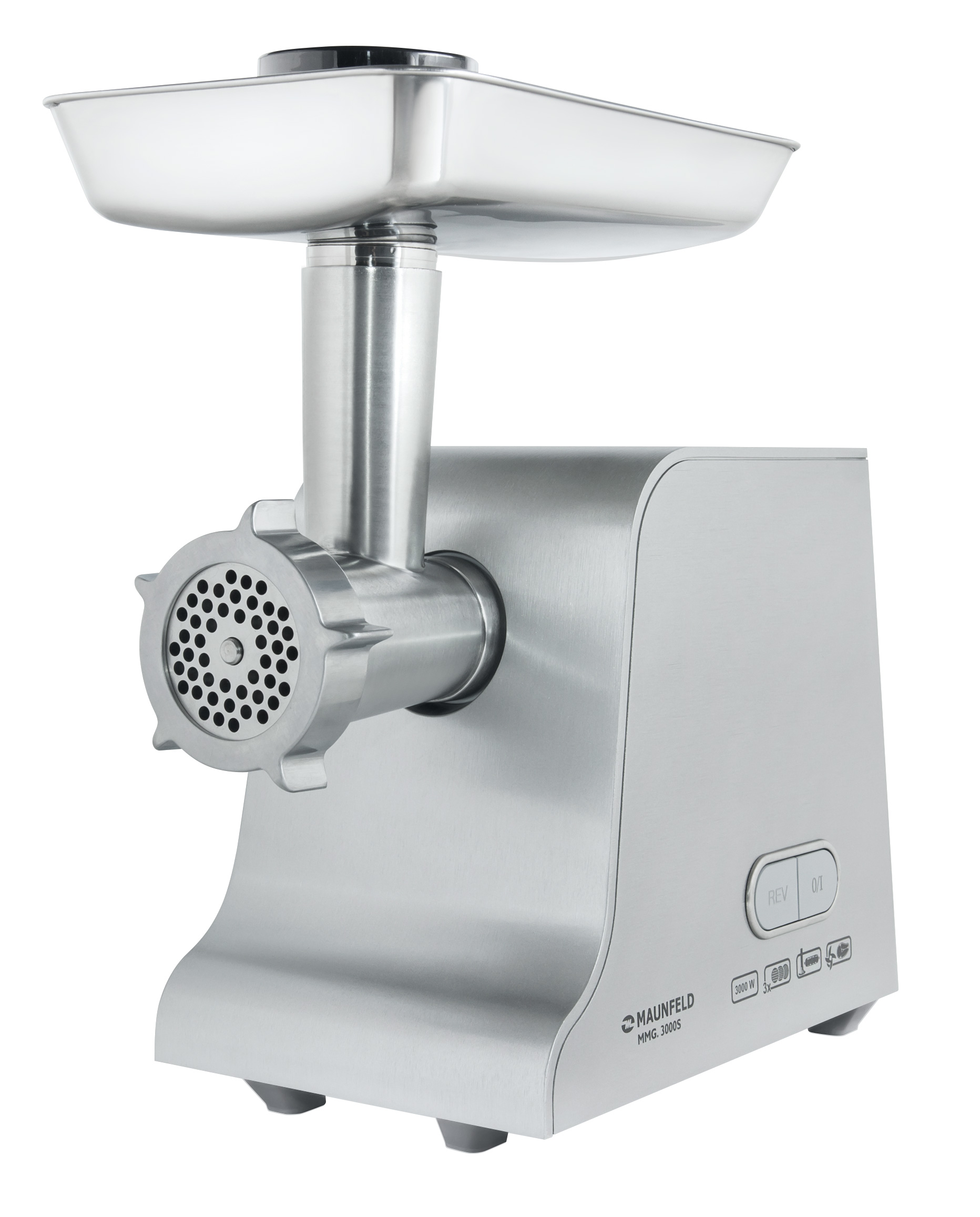 Мясорубка MAUNFELD/ Мясорубка MAUNFELD MMG.3000S, мощность 3000 Вт, производительность 3,9 кг/мин, 5 насадок, реверс, защита от перегрузки, контейнер для хранения насадок, блокировка при перегреве, цвет нержавеющая сталь
