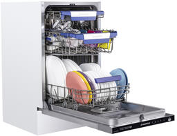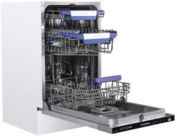 Узкая встраиваемая посудомоечная машина шириной 45 см. Благодаря использованию специально разработанных корзин и дополнительного выдвижного лотка для столовых приборов позволяет вымыть 10 комплектов посуды. Внутренняя поверхность выполнена из нержавеющей стали толщиной 0.6-0.8 мм, что обеспечит долгий срок службы при активном использовании.