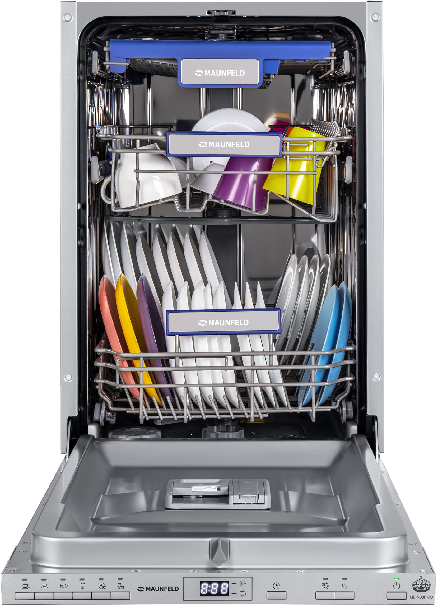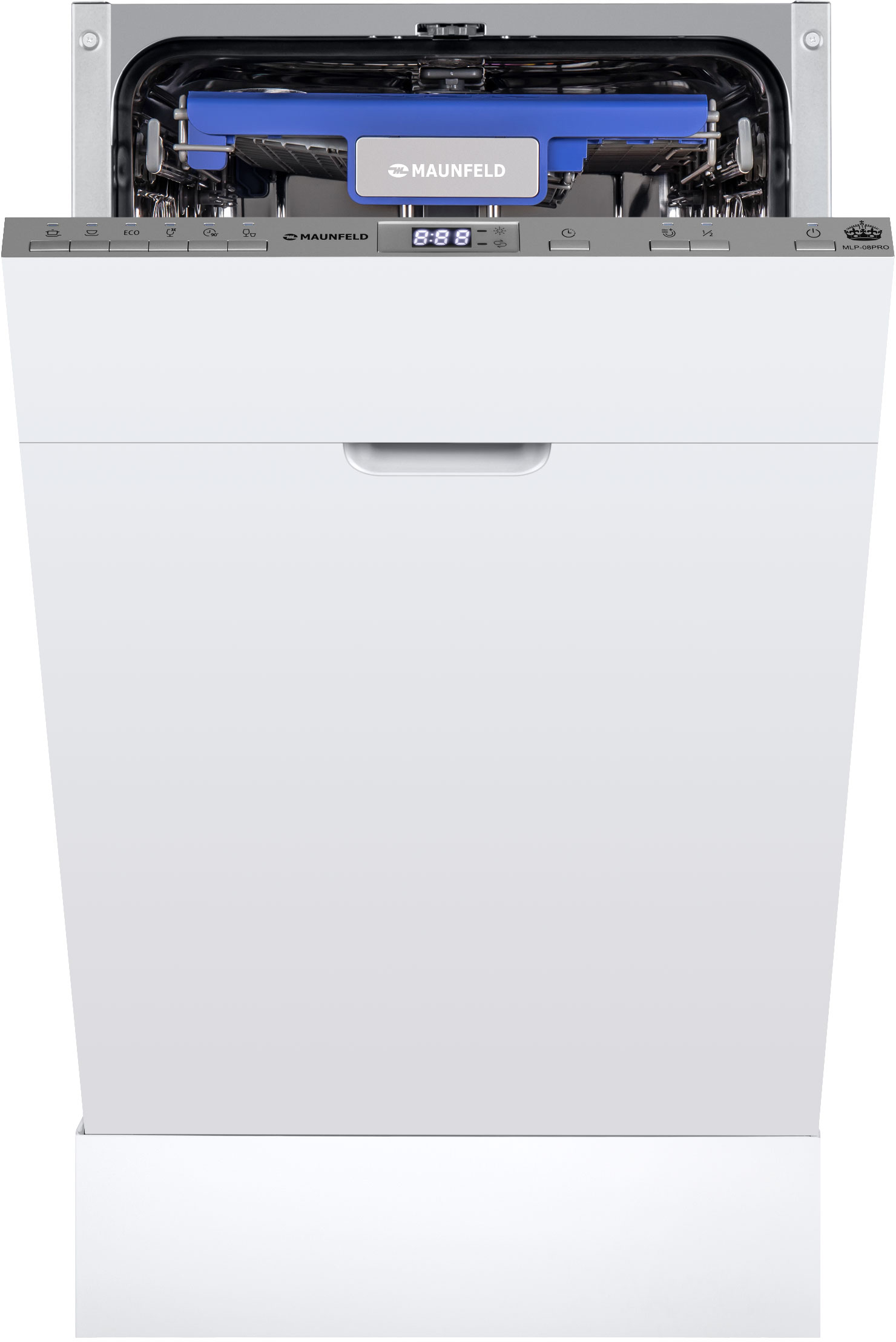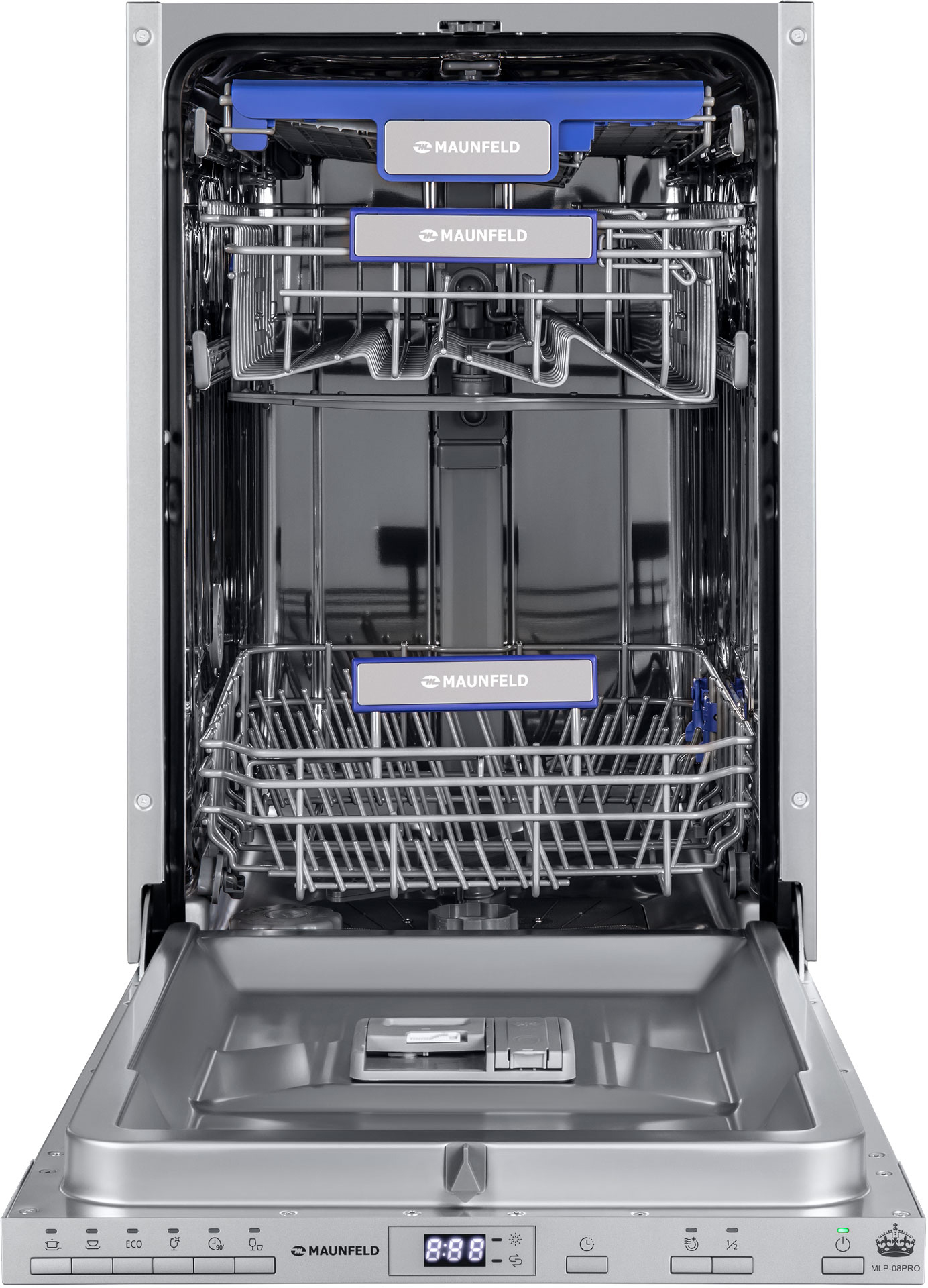 Посудомоечная машина MAUNFELD/ Посудомоечная машина MAUNFELD MLP-08PRO, встраиваемая 45 см, вместимость 10 комплектов, 8 программ, луч на полу, дисплей, режим 1/2 загрузки, третий уровень загрузки, отсрочка старта, аквастоп, внутреннее освещение, конденсационная сушка, кнопочное управление, энергоэффективность А++, цвет нержавеющая сталь