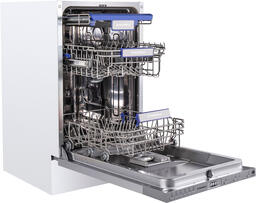 Узкая встраиваемая посудомоечная машина шириной 45 см. Благодаря использованию специально разработанных корзин и дополнительного выдвижного лотка для столовых приборов позволяет вымыть 10 комплектов посуды. Внутренняя поверхность выполнена из нержавеющей стали толщиной 0.6-0.8 мм, что обеспечит долгий срок службы при активном использовании.