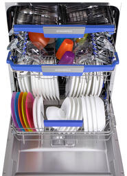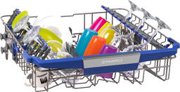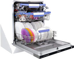 Благодаря использованию специально разработанных корзин и дополнительного выдвижного лотка для столовых приборов позволяет вымыть 14 комплектов посуды. Внутренняя поверхность выполнена из нержавеющей стали толщиной 0.6-0.8 мм, что обеспечит долгий срок службы при активном использовании.
