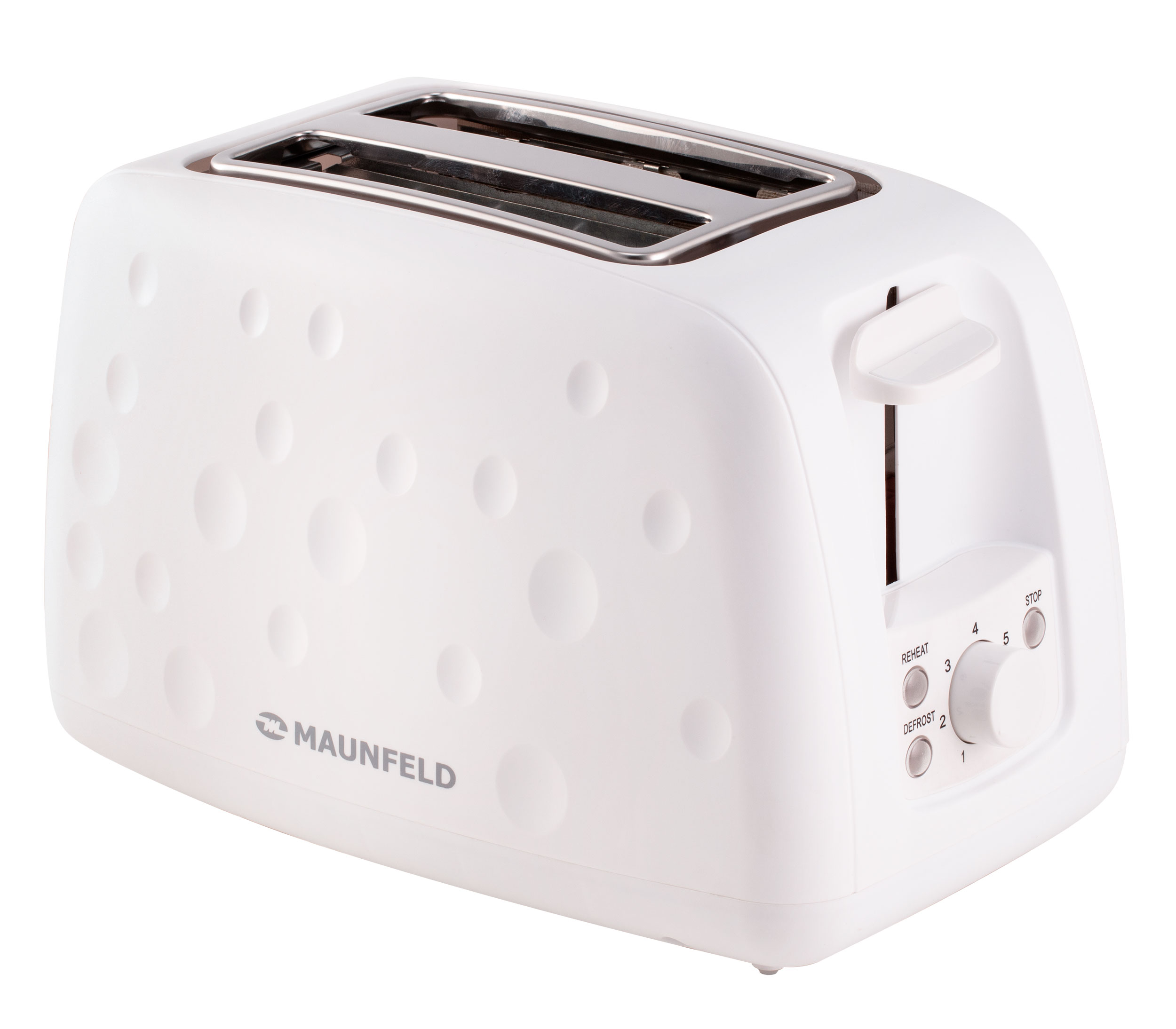 Тостер MAUNFELD/ Тостер MAUNFELD MFT-847WH, мощность 930 Вт, 2 тоста, регулировка степени поджаривания, размораживание, подогрев, поддон для крошек, цвет белый