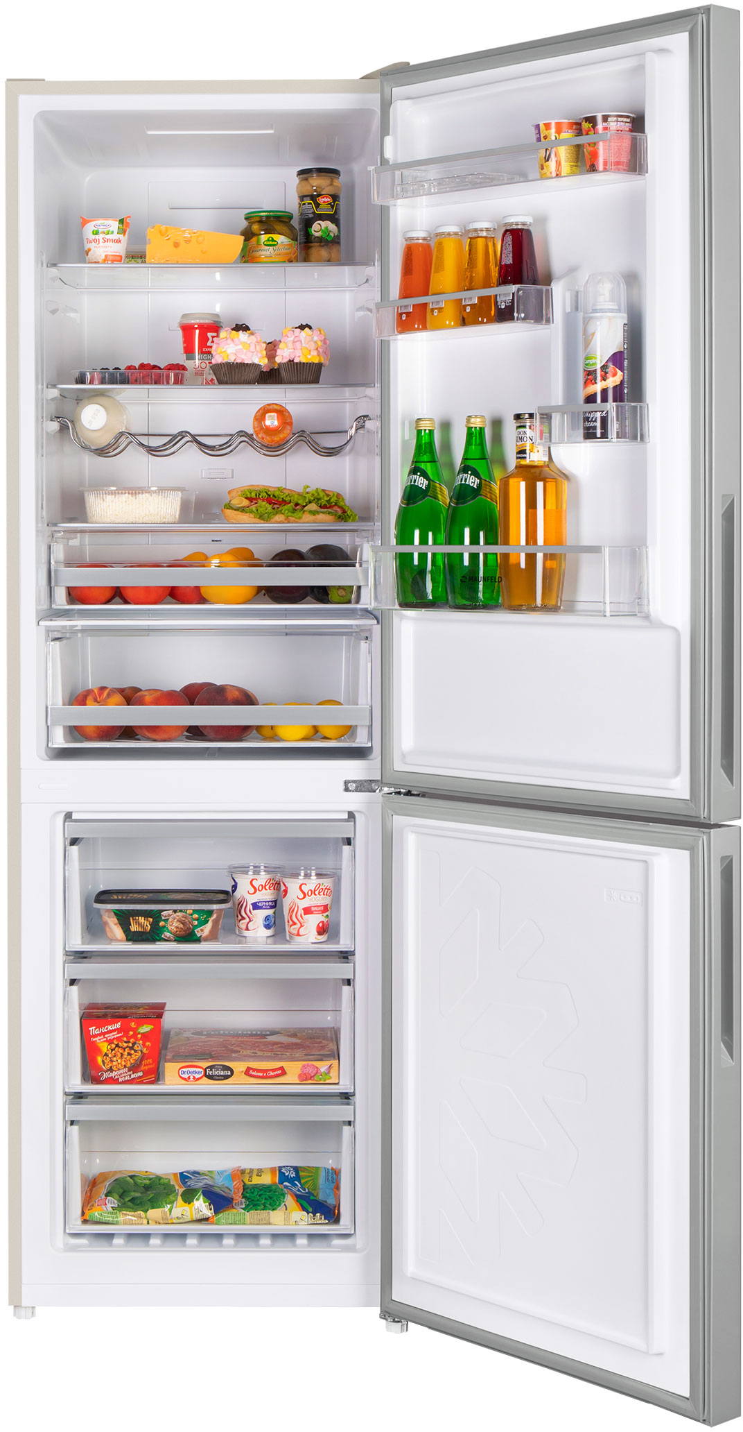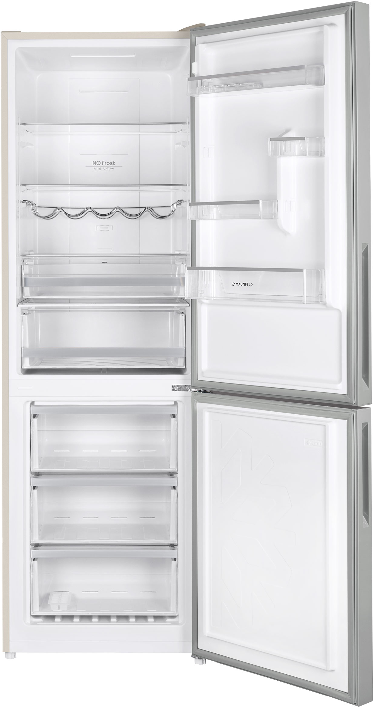 Холодильник MAUNFELD/ Холодильник MAUNFELD MFF185NFBG, NoFrost, стандартный компрессор, полезный объем 317 л, объем холодильной камеры 240 л, объем морозильной камеры 100 л, сенсорное управление, LED освещение, R600A, энергоэффективность А+, уровень шума 42 дБ, цвет бежевый