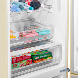 Климатический класс холодильника - ST. Это указывает на то, что он выполняет свои функции при температуре окружающей среды от +16°C до +38°С. Низкий уровень шума при работе компрессора (39 Дб) позволяет устанавливать его в кухне-гостиной. Класс энергопотребления: A+.