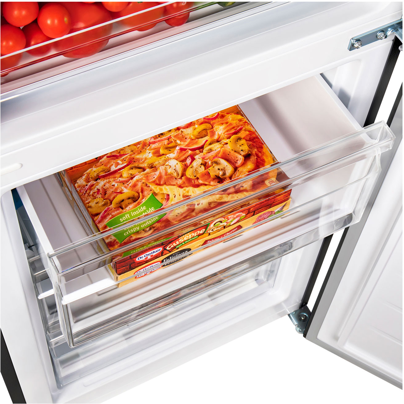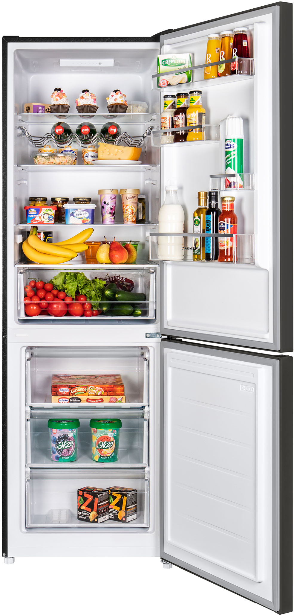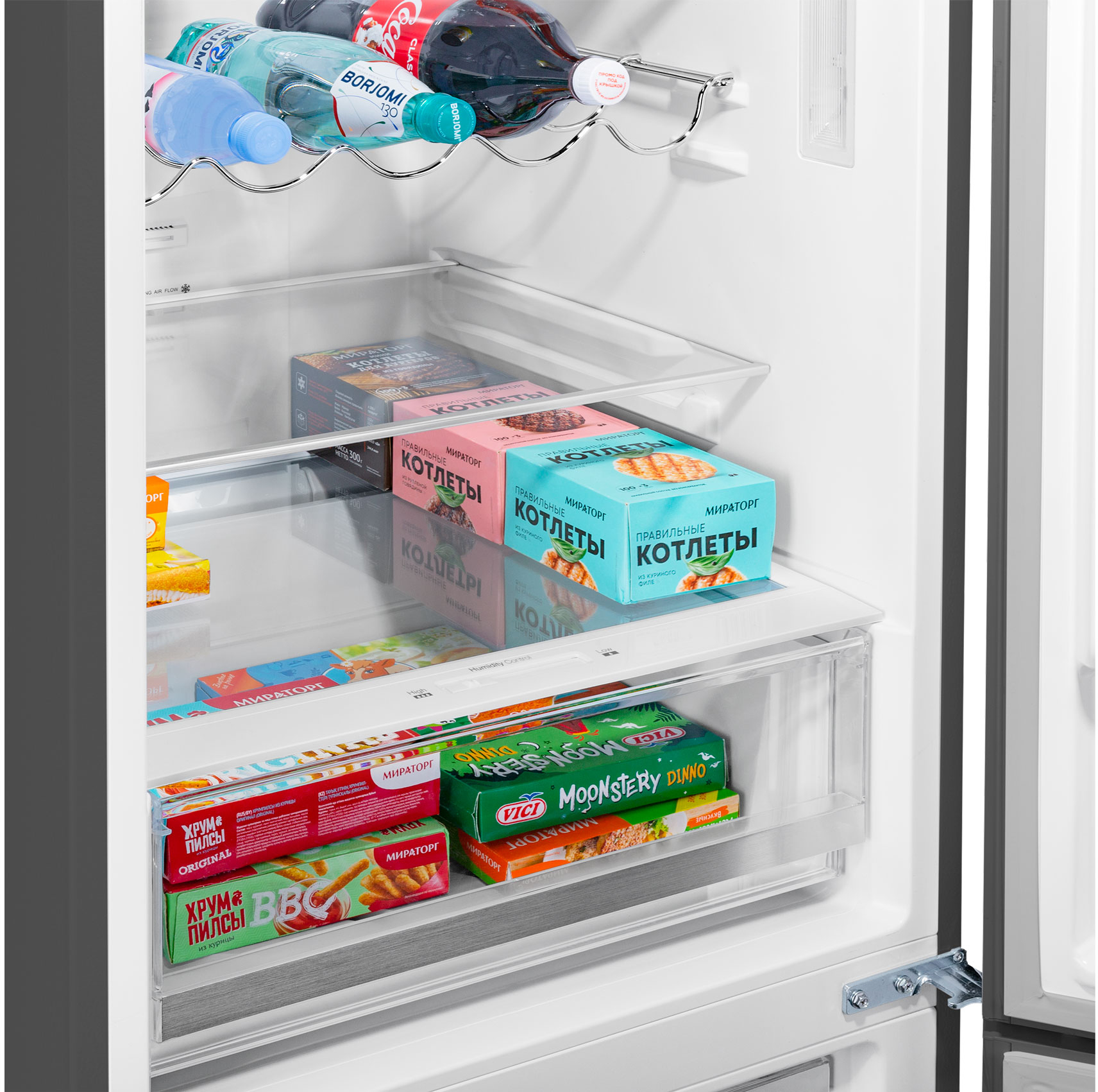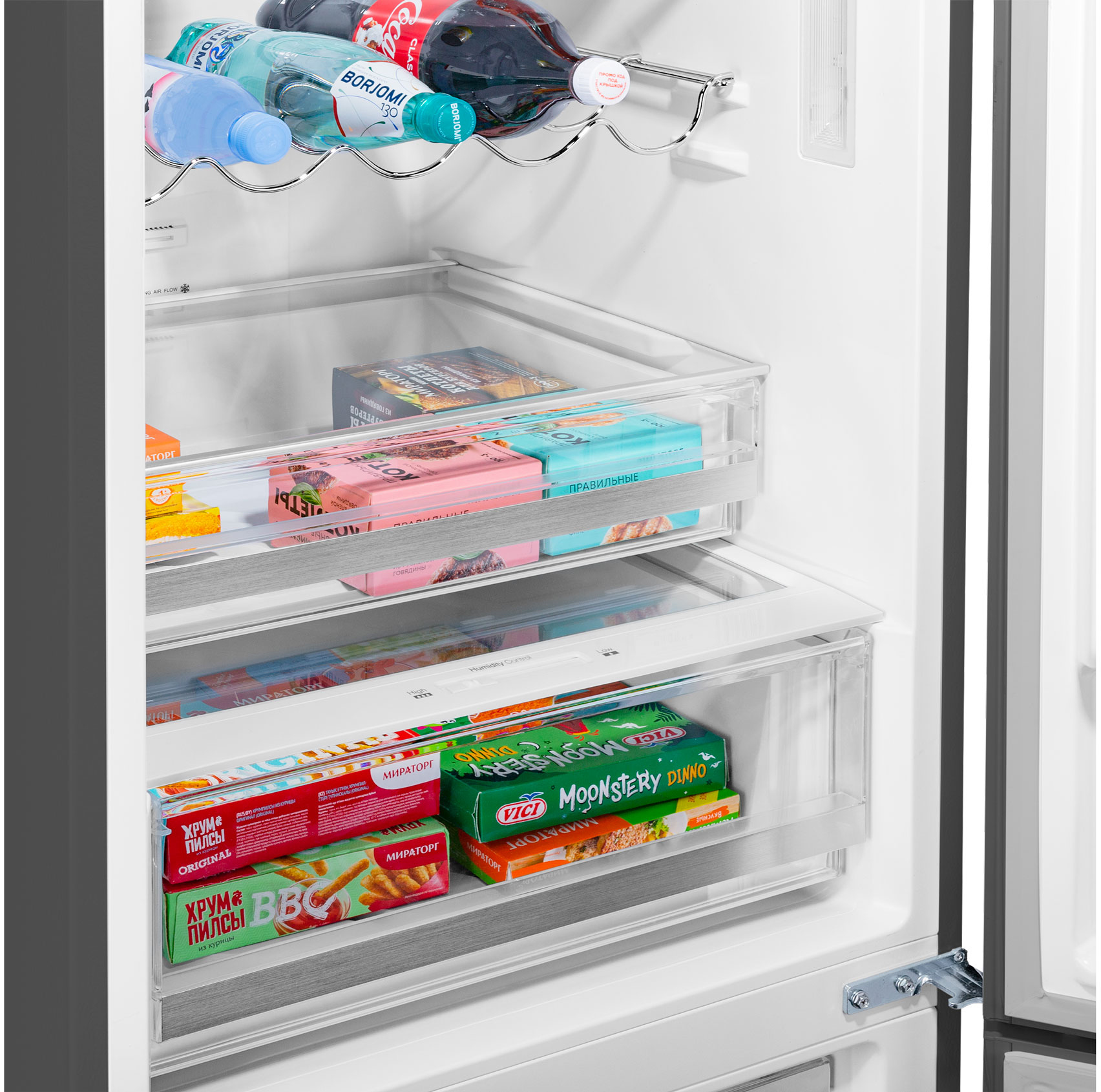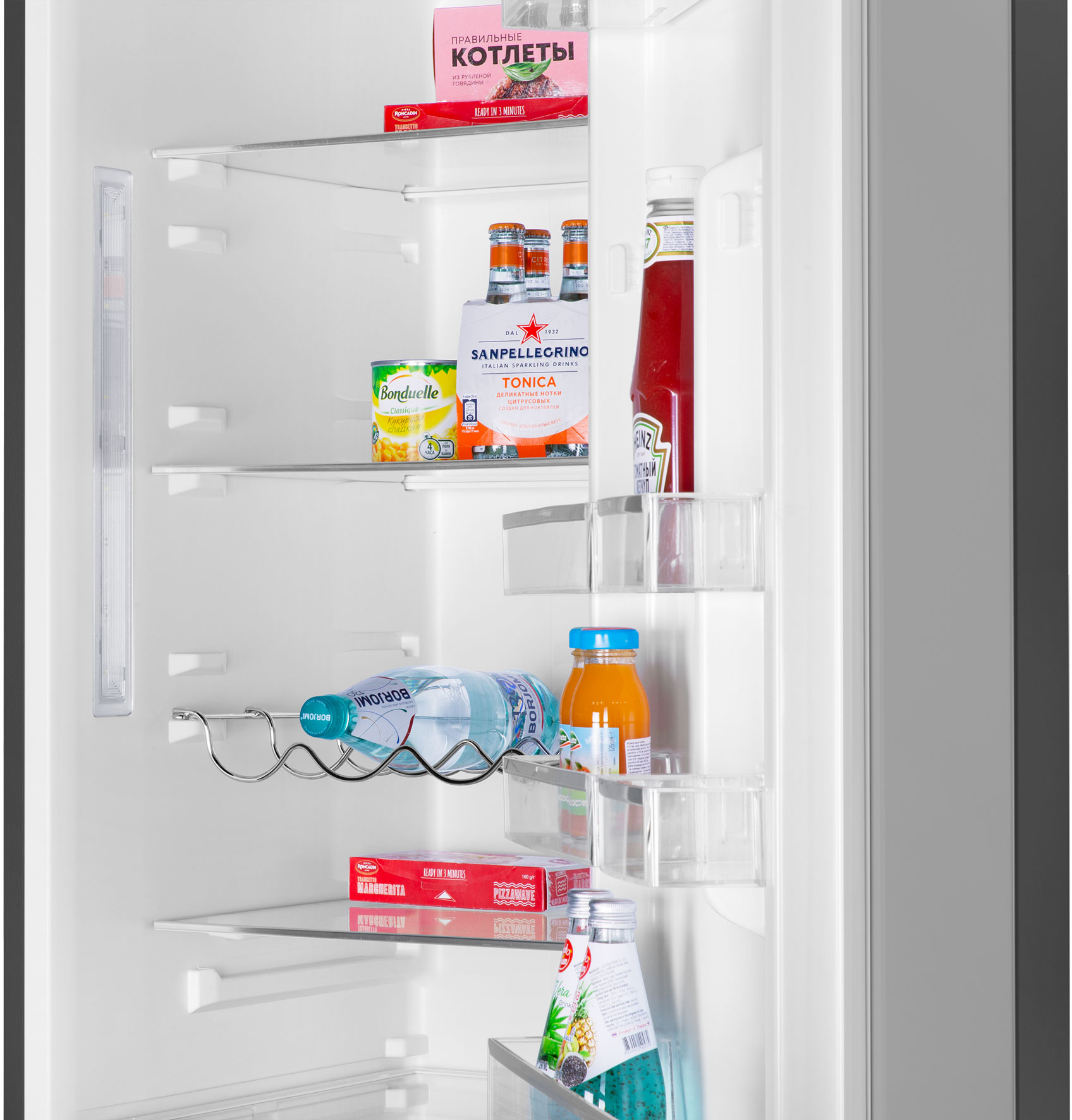 В верхней холодильной камере (213 л) находятся: