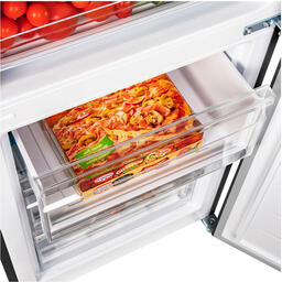 Климатический класс холодильника - ST. Это указывает на то, что он выполняет свои функции при температуре окружающей среды от +16°C до +38°С. Низкий уровень шума при работе компрессора (39 Дб) позволяет устанавливать его в кухне-гостиной. Класс энергопотребления: A+.