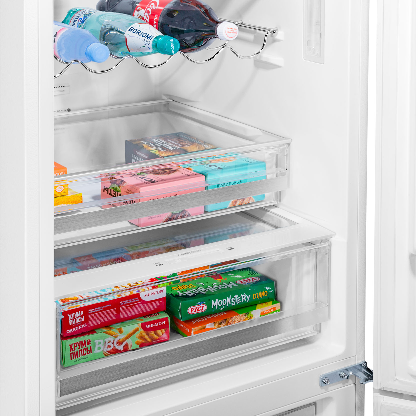 Больше нет необходимости размораживать холодильник, так как наледь не образуется в холодильниках MAUNFELD с системой автоматического оттаивания (NoFrost). Главные преимущества системы NoFrost в морозильной камере: замороженные продукты больше не склеиваются, не уменьшается внутреннее пространство из-за образования наледи, а ящики всегда так же легко и удобно открывать, как при первом использовании камеры.