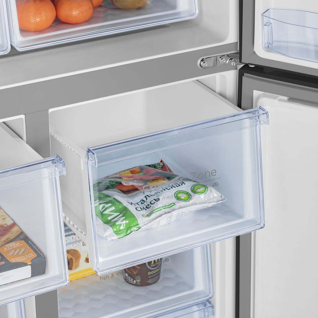 Система охлаждения всех трех камер - «Total No Frost». Это инновационная разработка, при которой холодный сухой воздух равномерно распределяется при помощи вентилятора по всей камере. Благодаря этому на продуктах и внутренних поверхностях прибора не образовывается иней. Теперь вам никогда не придется размораживать холодильник.