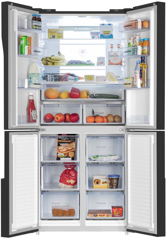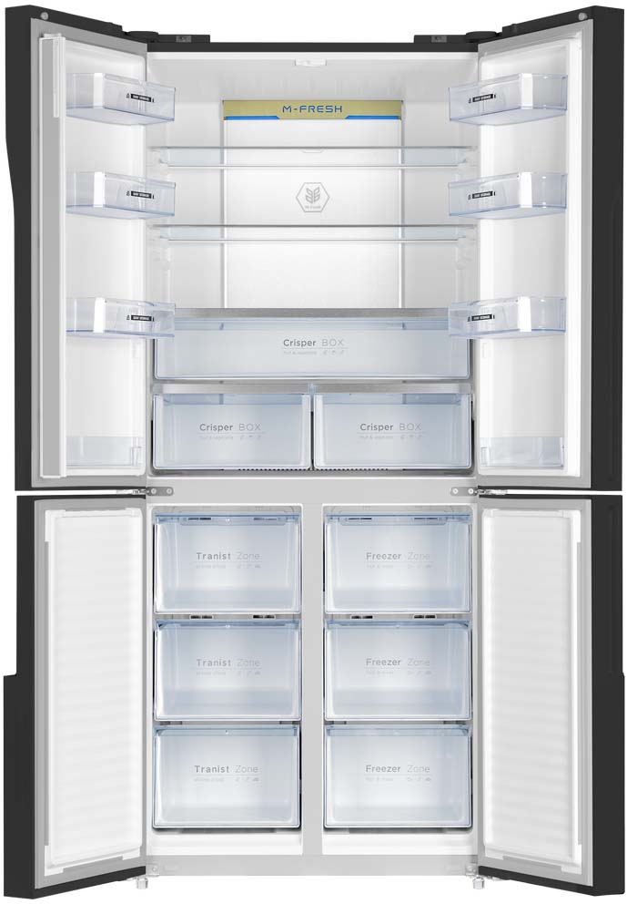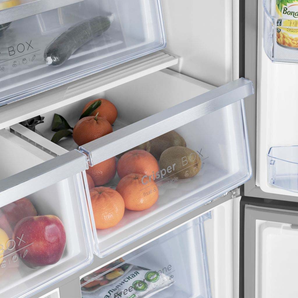 Умный трехкамерный холодильник Cross Door объемом 497 л с инверторным компрессором и компьютерным сенсорным управлением.