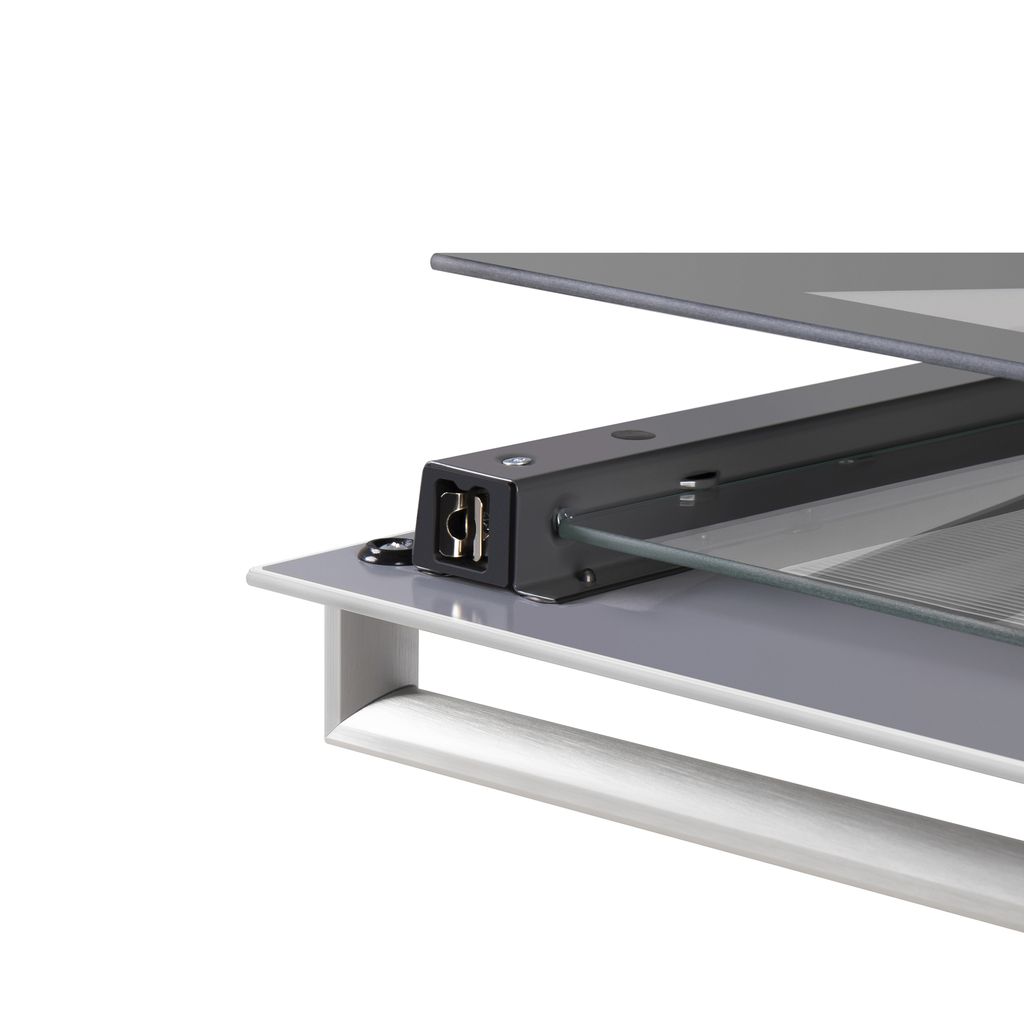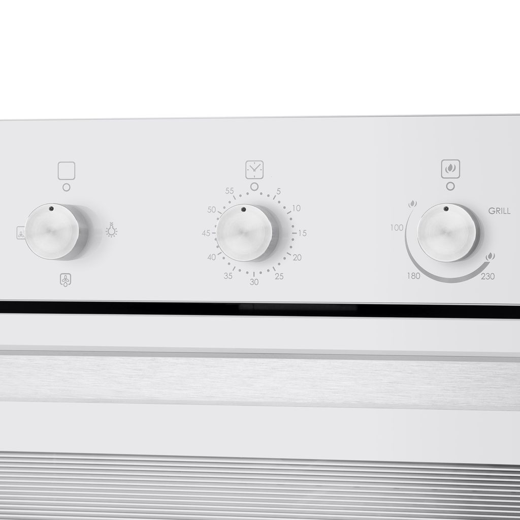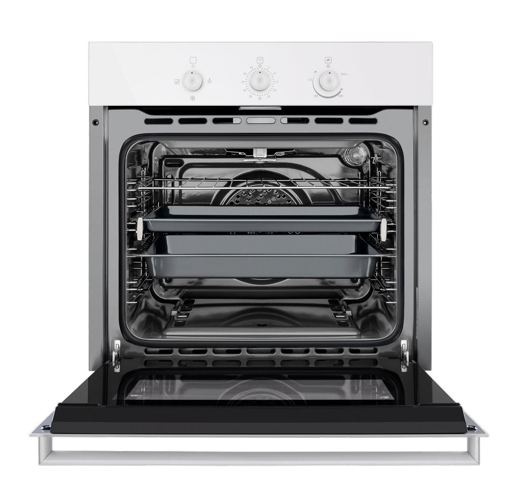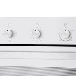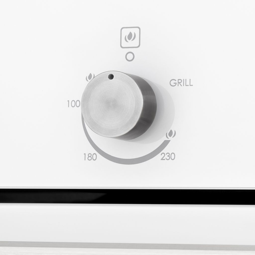 Фронтальная панель духовки выполнена из высококачественного жаропрочного тонированного стекла белого цвета. Ручка дверцы, сделанная из матированной нержавеющей стали, не нагревается в процессе готовки.