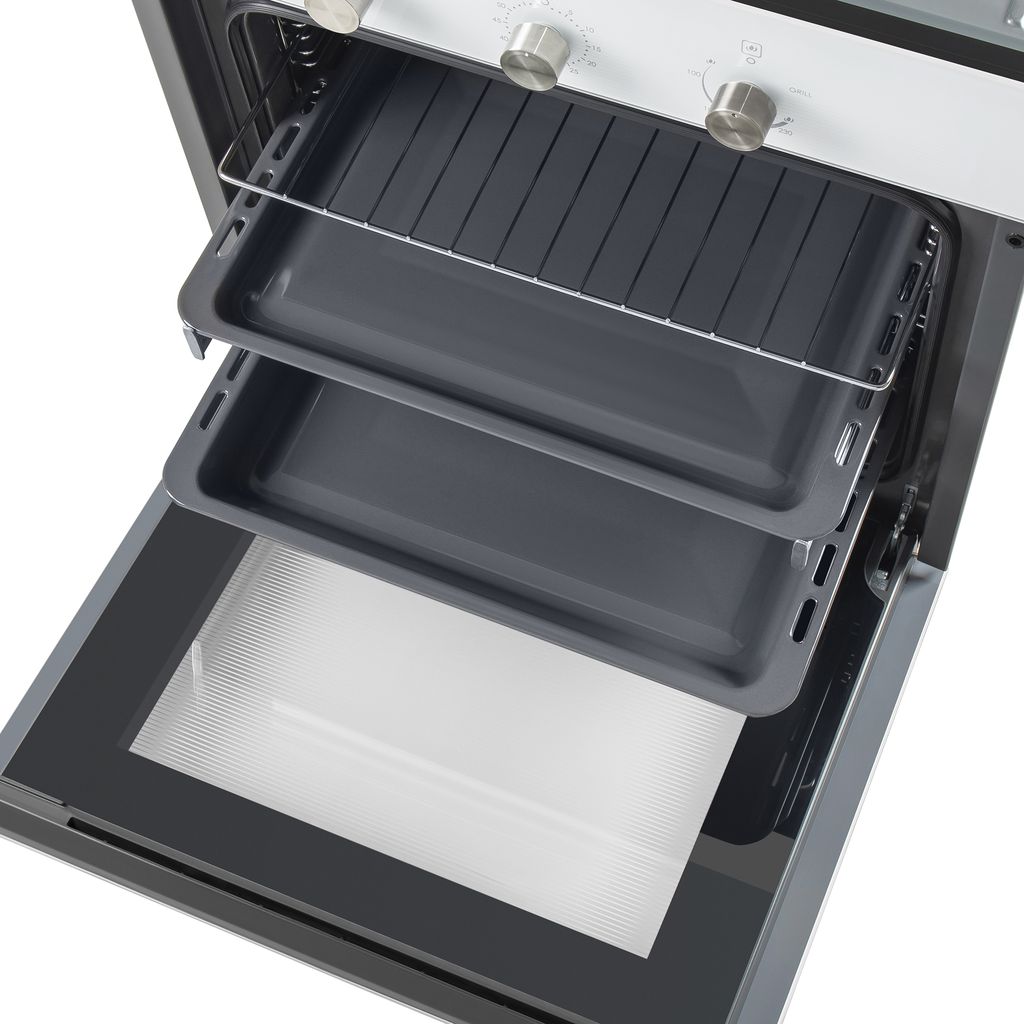 Надежность духового шкафа обеспечивается полным газ-контролем – система, которая перекрывает подачу газа, если потух огонь. Автоматический электроподжиг является дополнительным преимуществом этой модели.